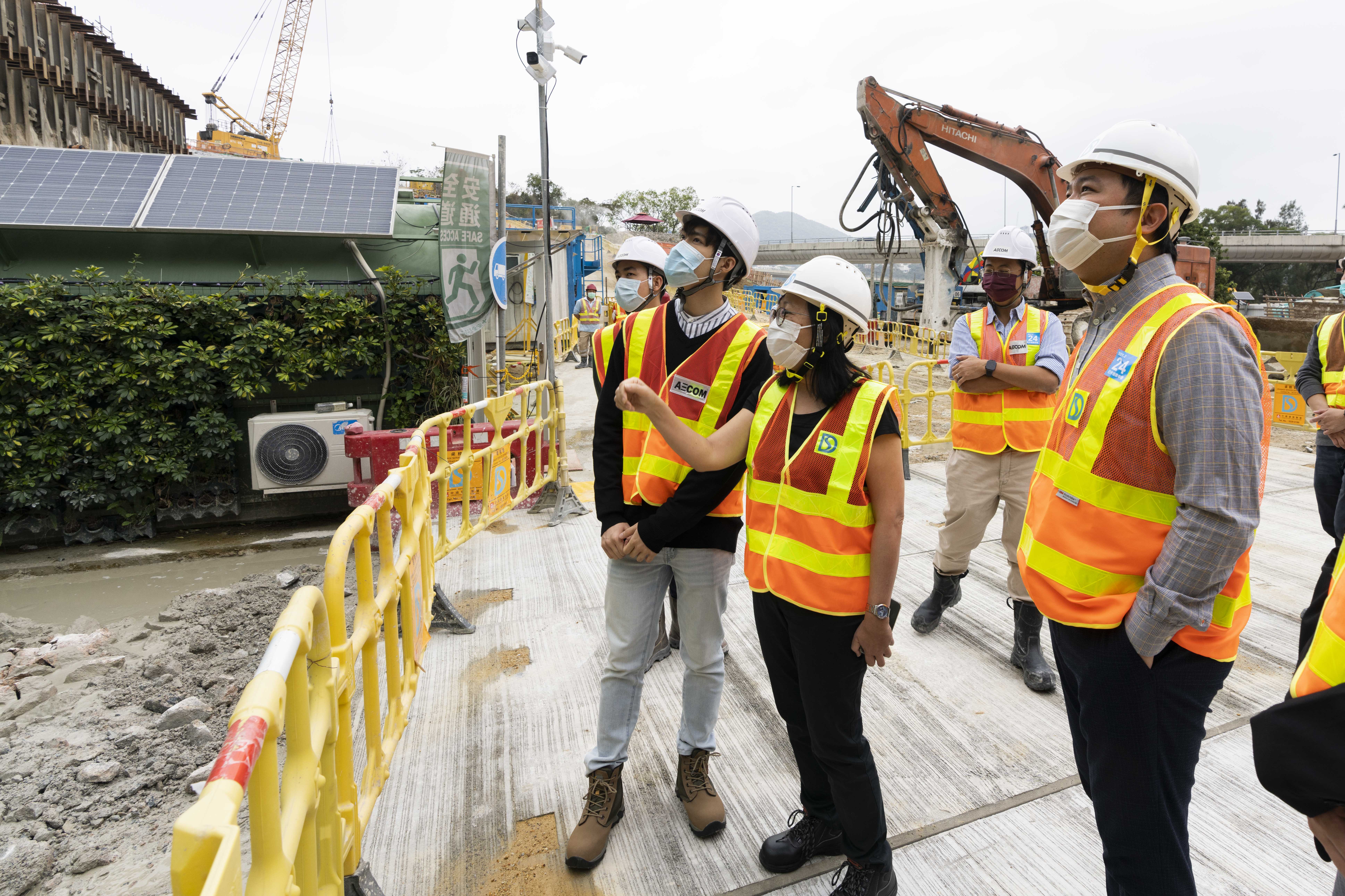 After the interview, Ms PANG toured the representatives around the works site of “Relocation of Sha Tin Sewage Treatment Works to Caverns –Site Preparation and Access Tunnel Construction”, she introduced the project and the challenges faced during implementation.
