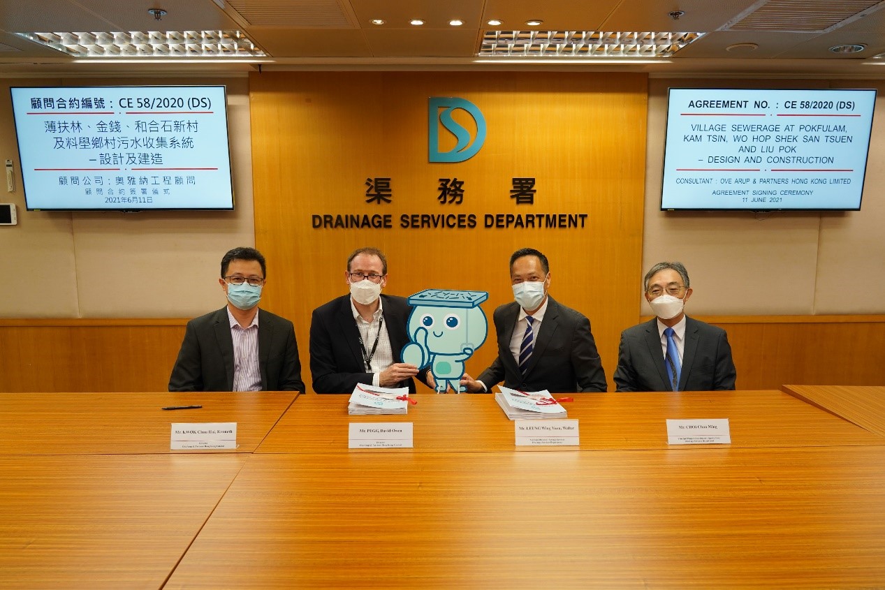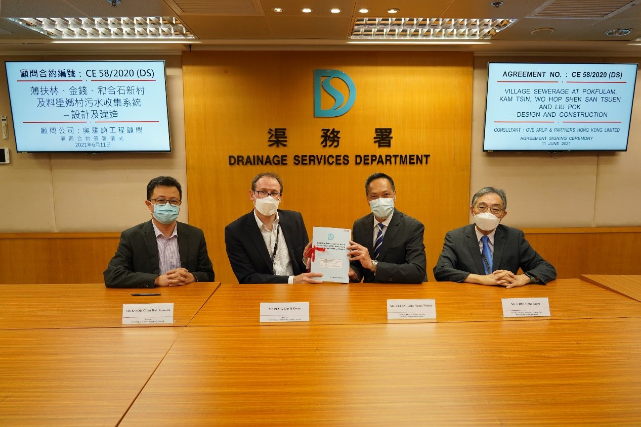 The Drainage Services Department signed a consultancy agreement of about $8.0 million on 11 June 2021 with Ove Arup & Partners Hong Kong Limited for undertaking the design and construction for “Village sewerage at Pokfulam, Kam Tsin, Wo Hop Shek San Tsuen and Liu Pok”.