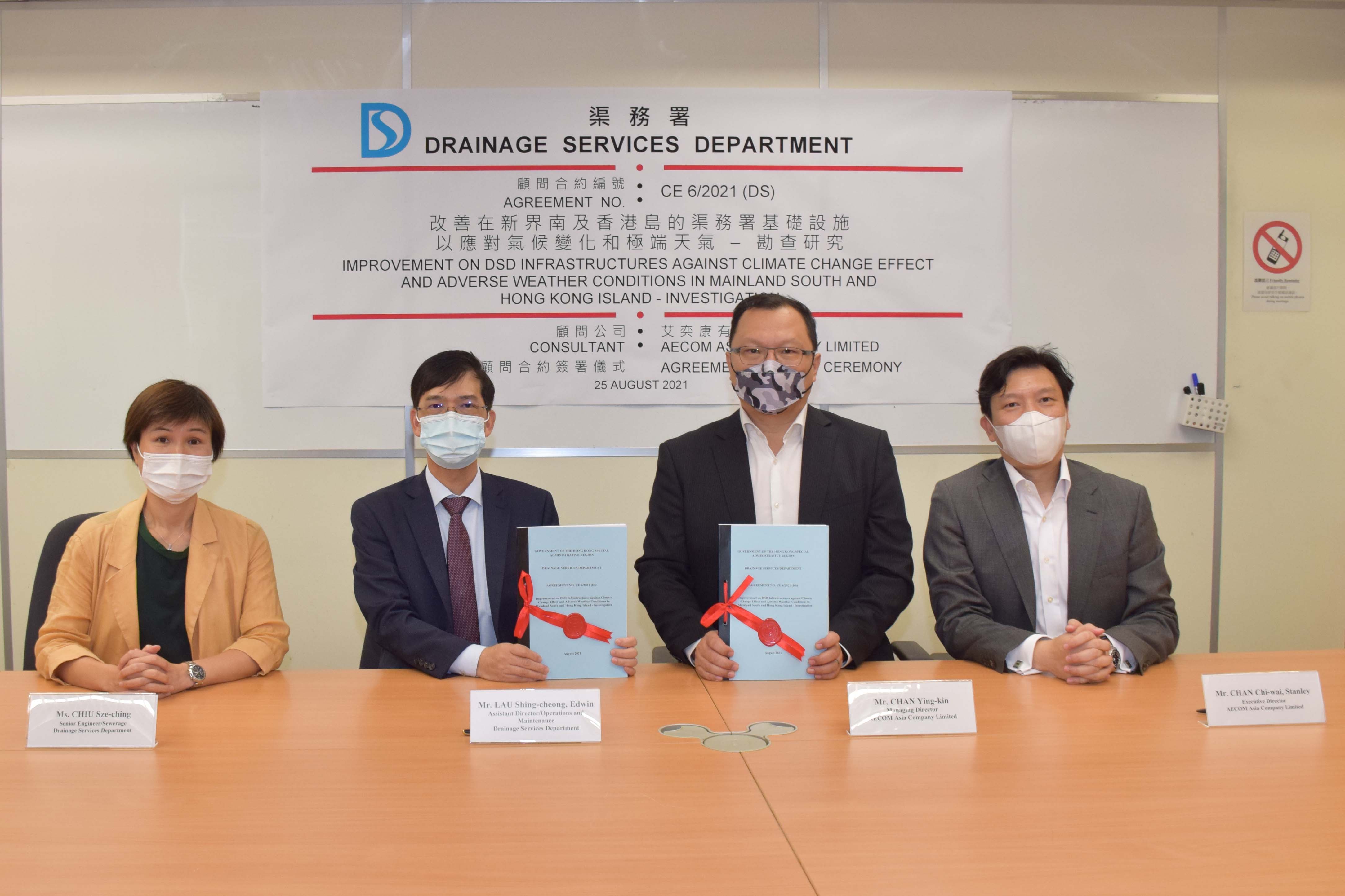 The Drainage Services Department signed a consultancy agreement of $8.9 million with AECOM Asia Company Limited on 25 August 2021 for undertaking the Investigation for the Improvement on DSD Infrastructures against Climate Change Effect and Adverse Weather Conditions in Mainland South and Hong Kong Island.