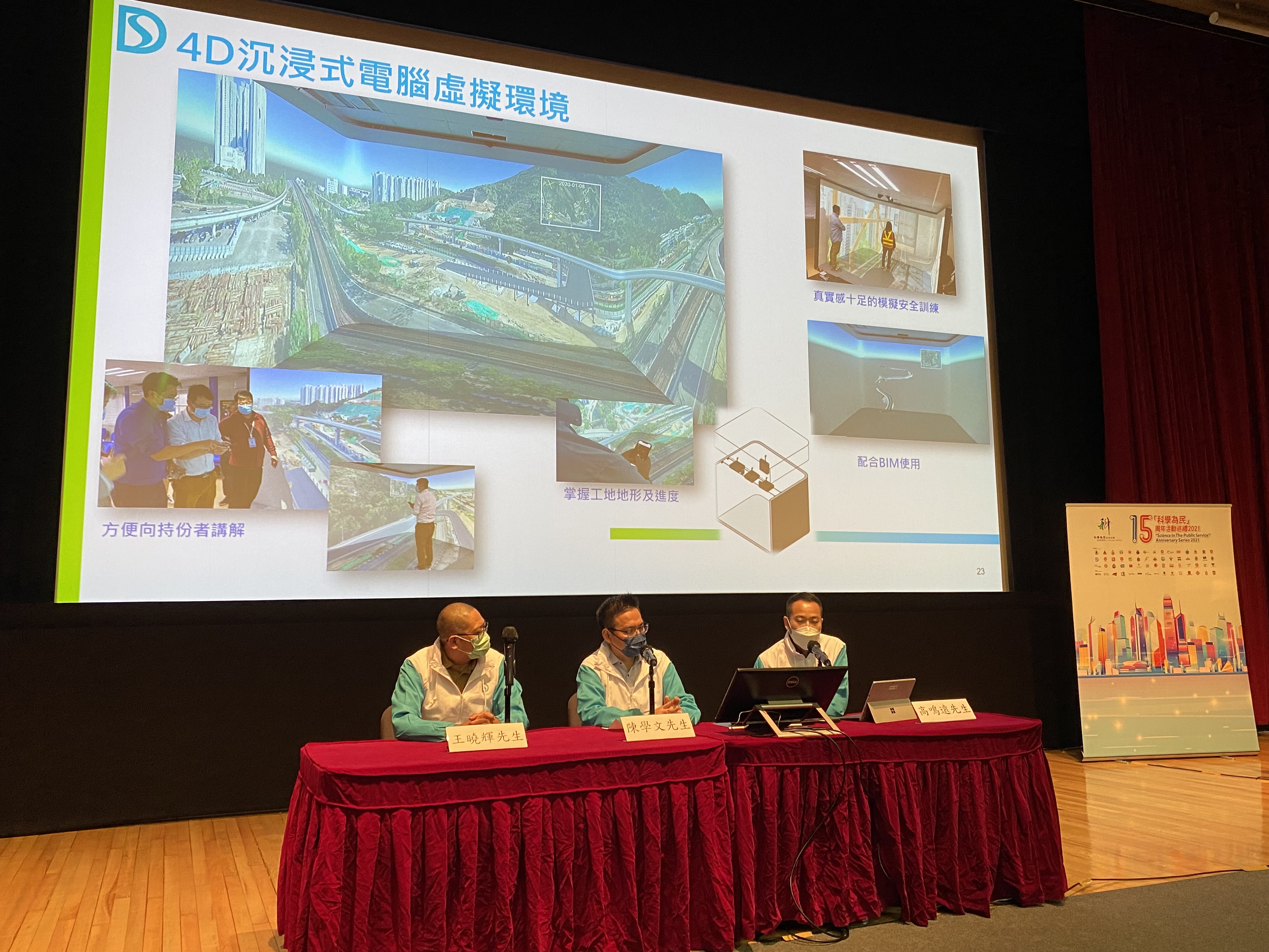 Senior Geotechnical Engineer, Mr Joel WONG Yiu Fai (left), Senior Engineer, Mr John CHAN Hok Man (middle) and Geotechnical Engineer, Mr Elton KO Ming Yuen (right) of DSD introduced the application of innovation and technology in project of Relocation of Sha Tin Sewage Treatment Works to Caverns