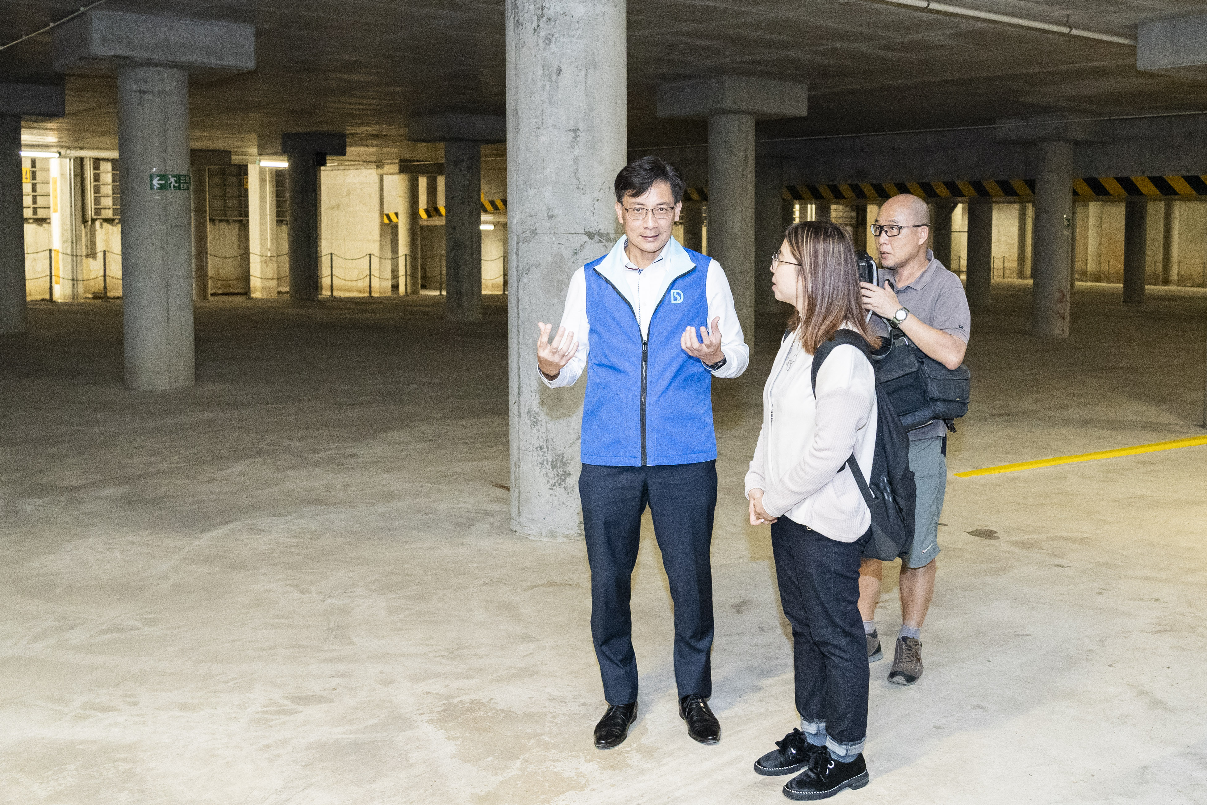 The Director of Drainage Services, Mr Ringo MOK Wing-cheong, toured the reporters around the Happy Valley Stormwater Storage Tank, and introduced the operation of the tank to the reporters