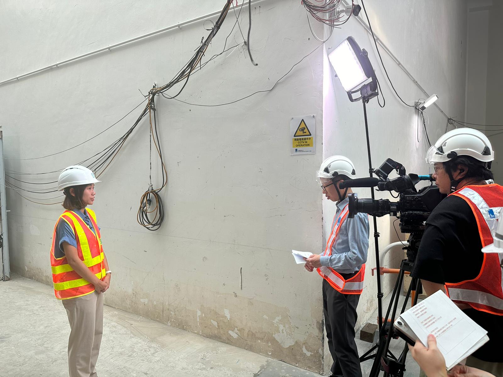 In the interview, Ms CHAN explained the functions and operation of the“Virtual Construction Safety Assistant” AI monitoring system. She also introduced in detail the benefits of the system and the results of the trial scheme conducted at the Shek Wu Hui Effluent Polishing Plant construction site.