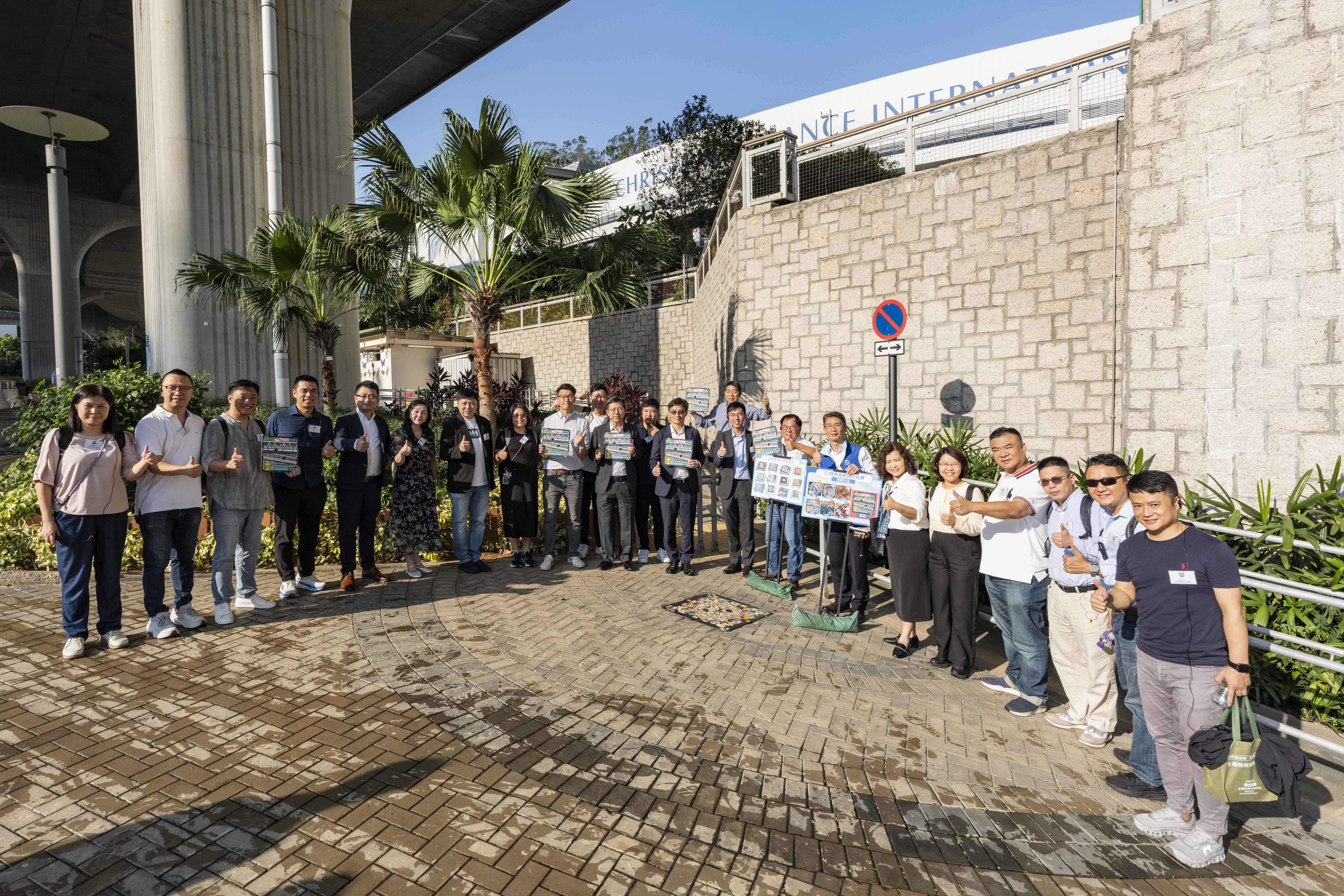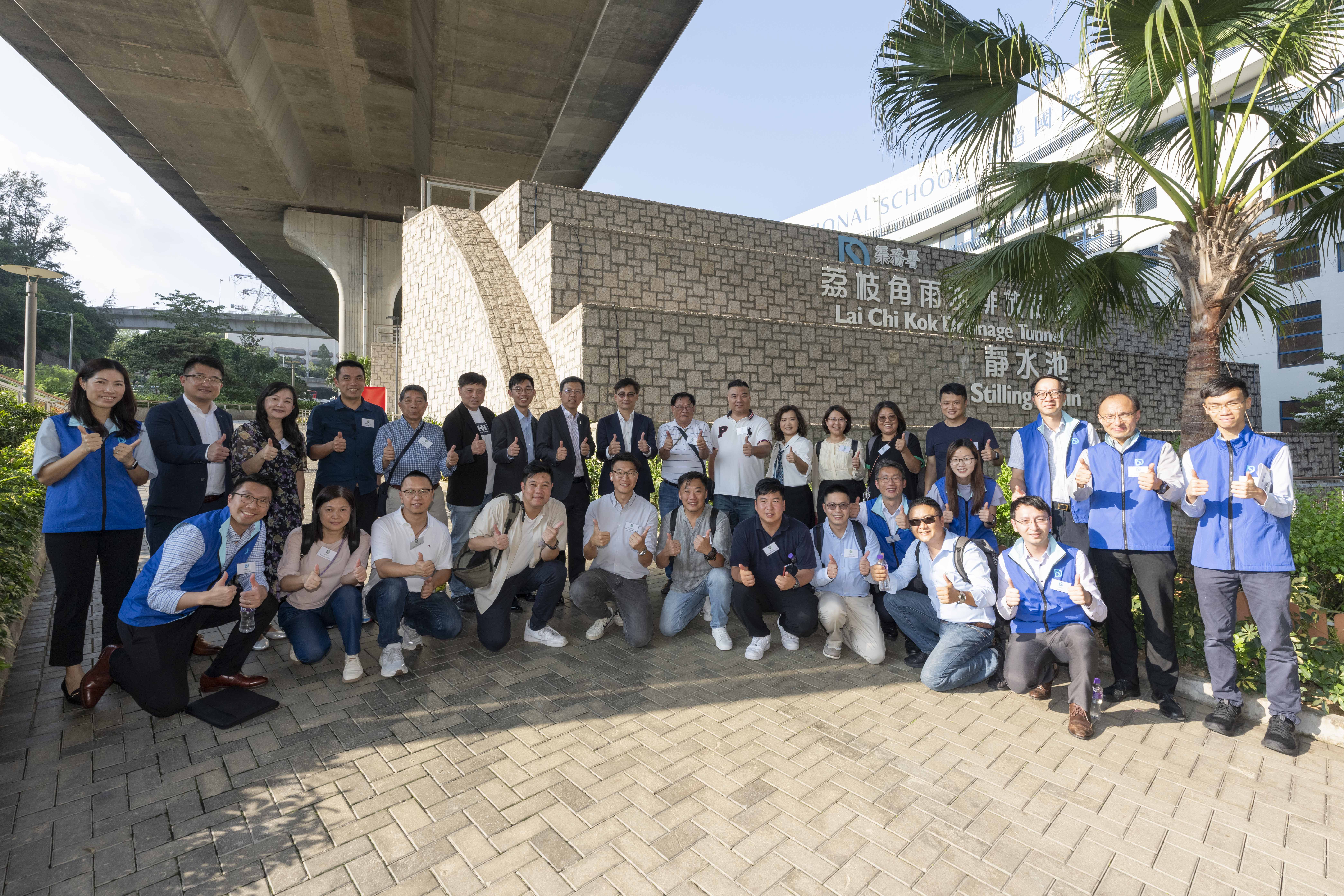 Group photo of the Director of Drainage Services, Mr Ringo MOK Wing-cheong (back row, ninth left), District Officer cum Chairman of Tsuen Wan District Council, Mr Billy AU Ka-shing (back row, eighth left), Tsuen Wan DC members and the DSD colleagues.