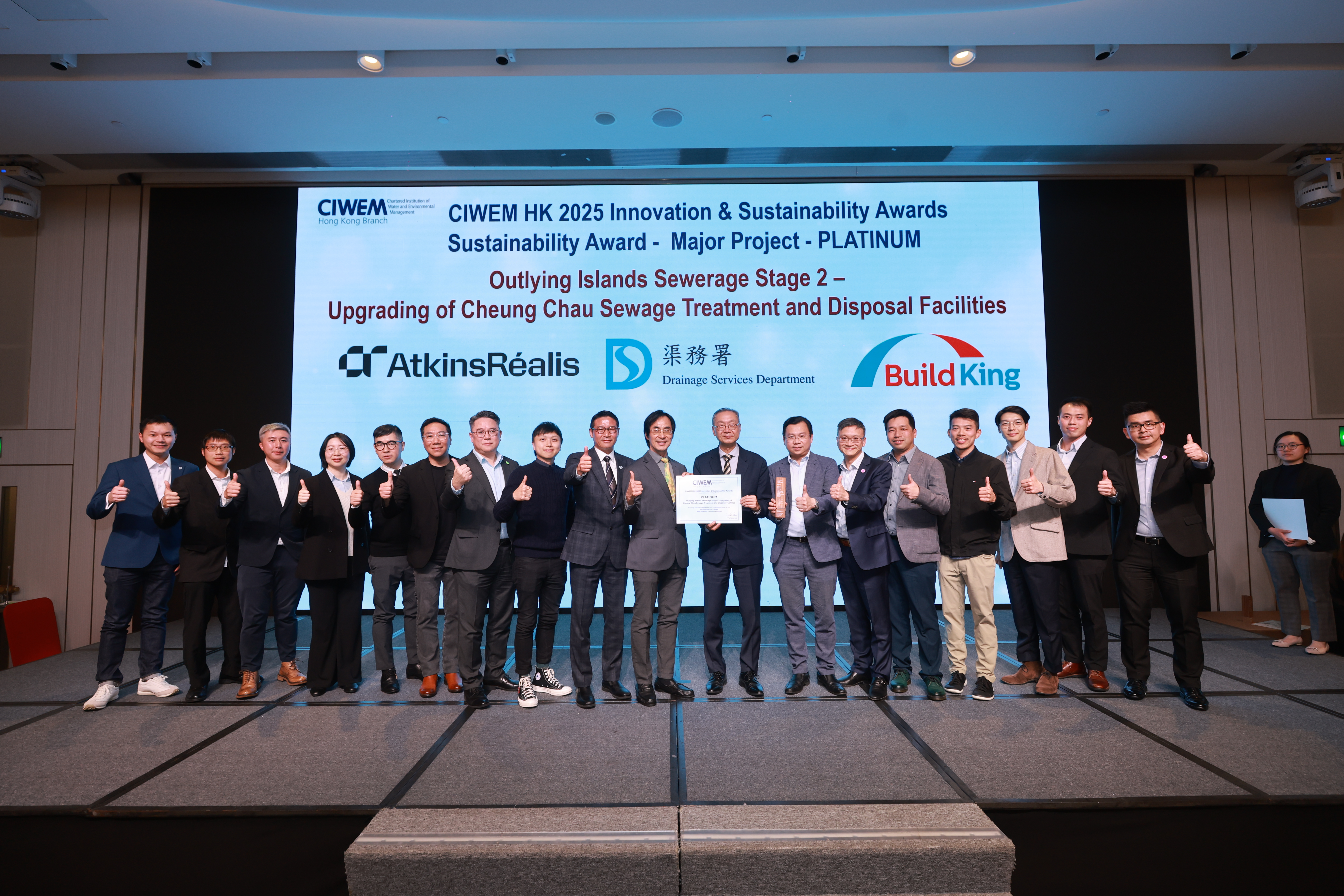 The project team of Outlying Islands Sewerage, Stage 2 – Upgrading of Cheung Chau Sewage Treatment and Disposal Facilities receiving the Platinum Award under the "Sustainability Award – Major Project" category