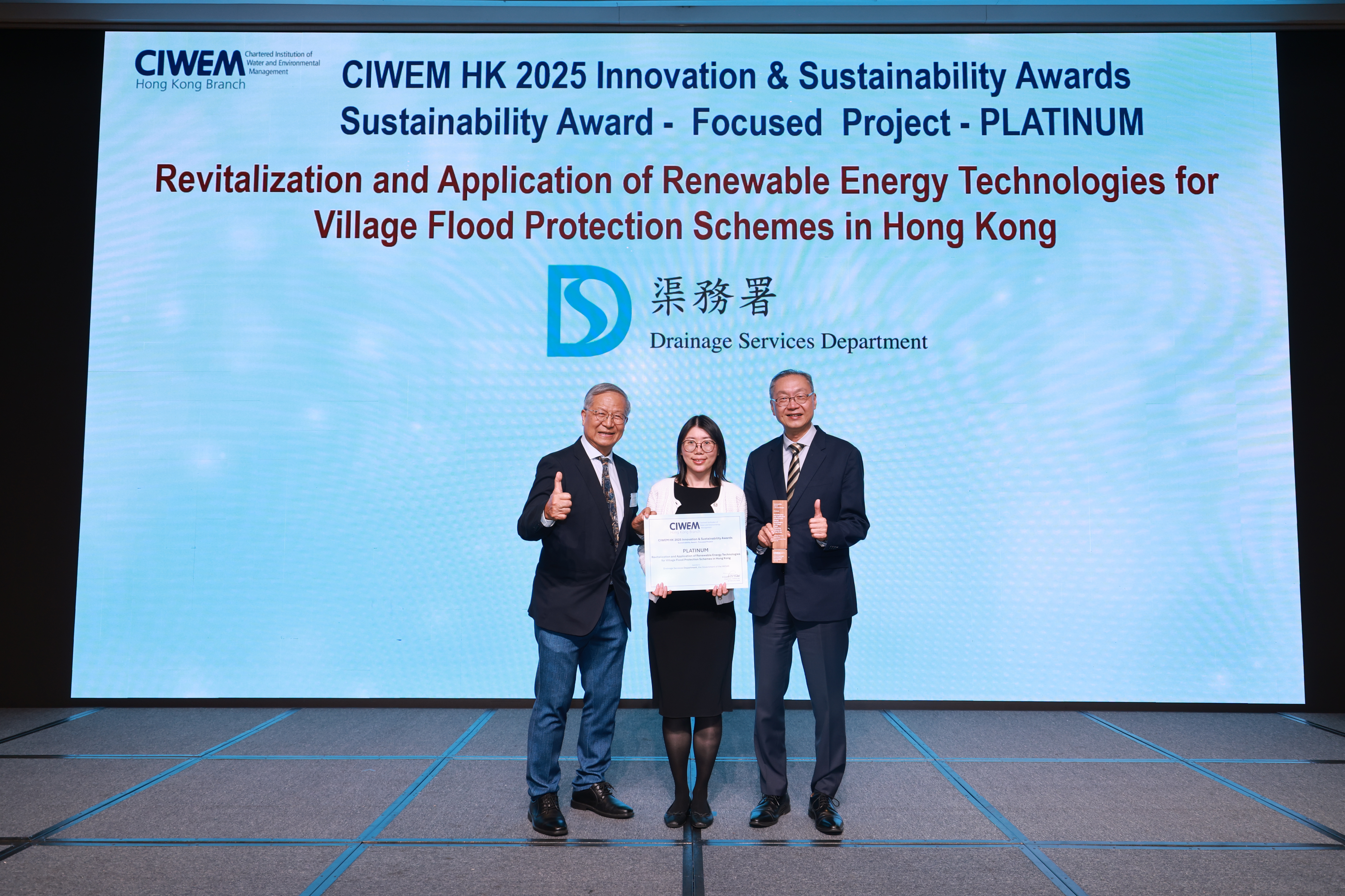 Revitalization and Application of Renewable Energy Technologies for Village Flood Protection Schemes in Hong Kong received the Platinum Award under the "Sustainability Award – Focused Project" Category