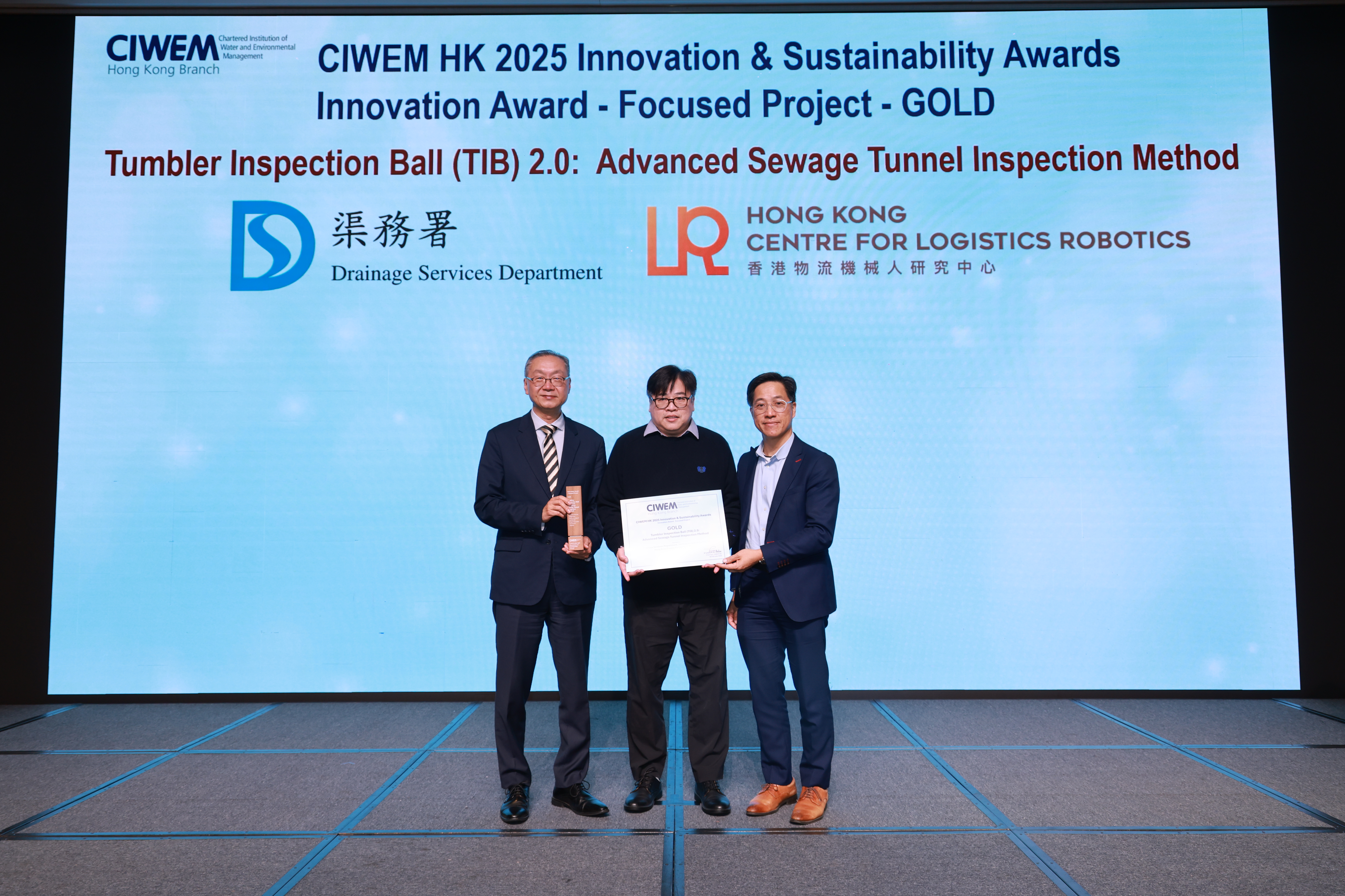 Tumbler Inspection Ball (TlB) 2.0: Advanced Sewage Tunnel Inspection Method received the Gold Award under the "Innovation Award – Focused Project" Category