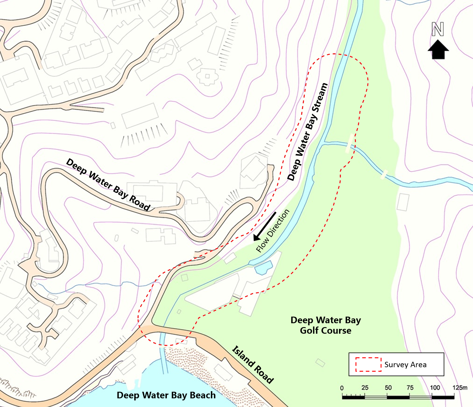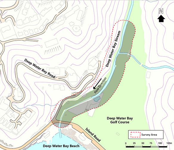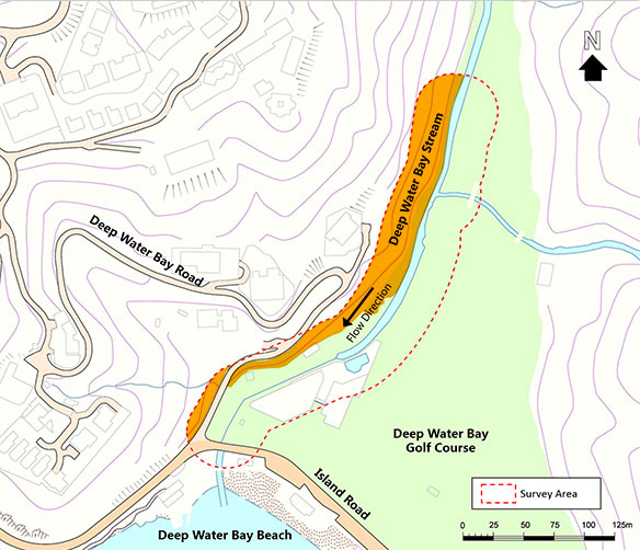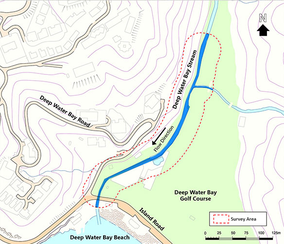 (Information updated in 2016)Deep Water Bay Stream is located on Hong Kong Island. It is an Ecologically Important Stream. It runs along the western boundary of Deep Water Bay Golf Course and flows into Deep Water Bay..