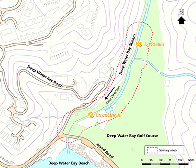 Deep Water Bay Stream is located on Hong Kong Island. It is an Ecologically Important Stream. It runs along the western boundary of Deep Water Bay Golf Course and flows into Deep Water Bay..