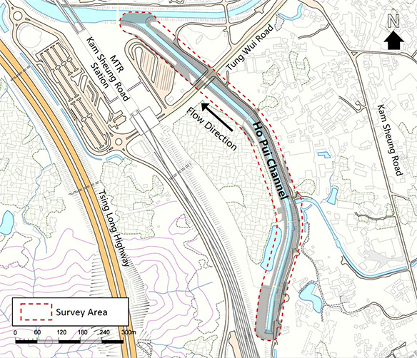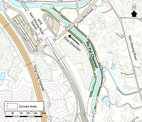 (Information updated in 2016)Ho Pui Channel is located at Kam Tin, Yuen Long. It was channelized in 2009. It drains water from the Ho Pui area and flows northward into Kam Tin River.