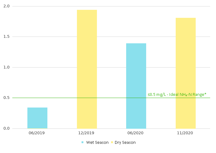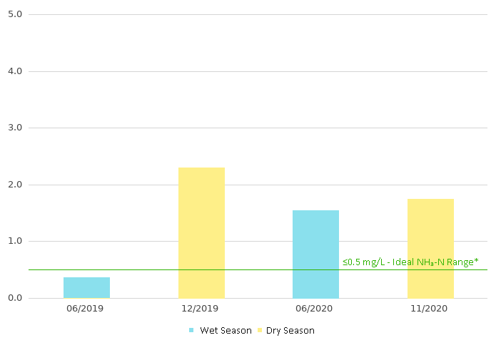 Ammonia-Nitrogen (NH3-N) Indicates the extent of organic contamination of the river channel. NH3-N < 0.5mg/L means that there is limited contamination by nutrient