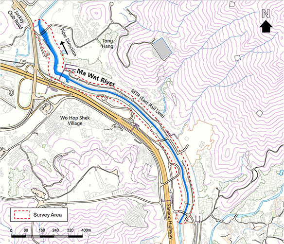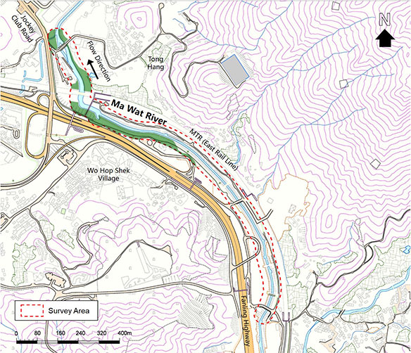 Ma Wat River is located at Fanling. It connects Kau Lung Hang Shan northwards towards Ng Tung River near Kan Lung Tsuen. The river section with grassed cellular concrete embankment was channelized in 2008. DSD started an ecological enhancement site trial in this section and the immediately downstream section near Jockey Club Road and Fanling Highway in late 2015. The details of the site trial are presented in the Site Trial section.