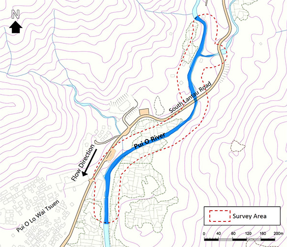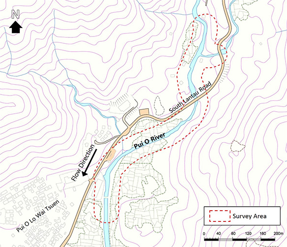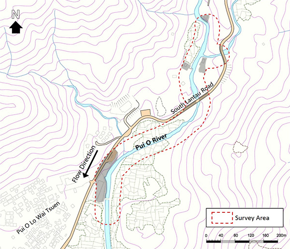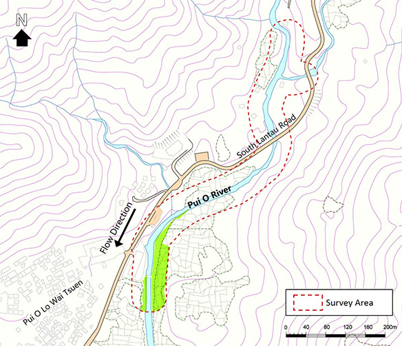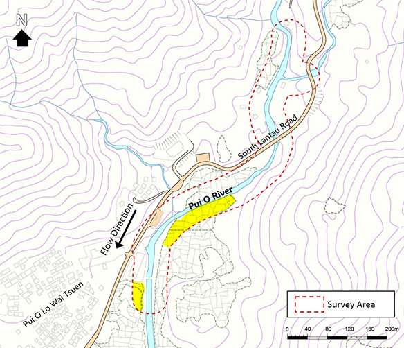 Pui O River is located on the southern side of Lantau Island. It is regarded as part of Ecologically Important Stream by AFCD. It passes through the village areas of Pui O and flows southward into Pui O Bay. It is a typical hillside stream with a short section near the Pui O Pumping station being channelized. The section opposite to Pui O Lo Wai Tsuen (Pui O Au) is an Ecologically Important Stream.