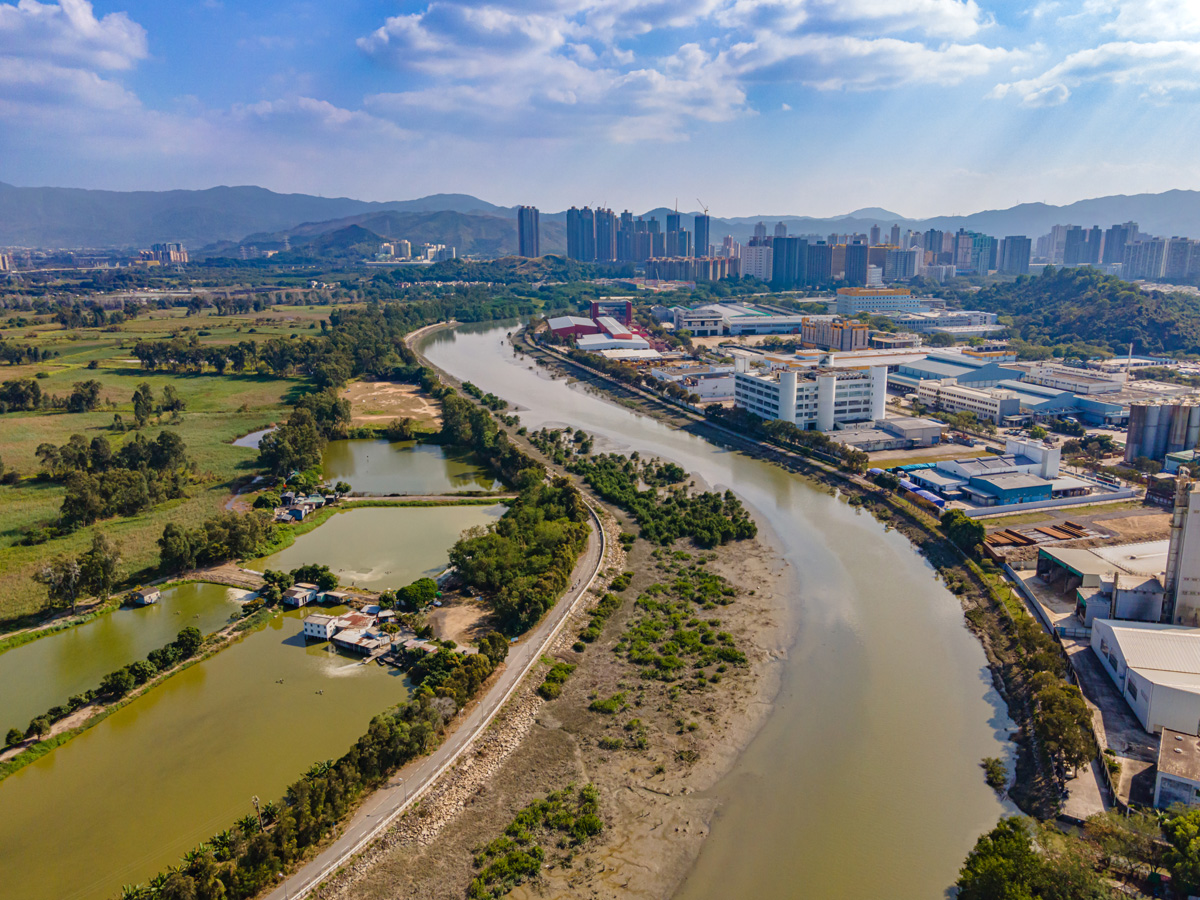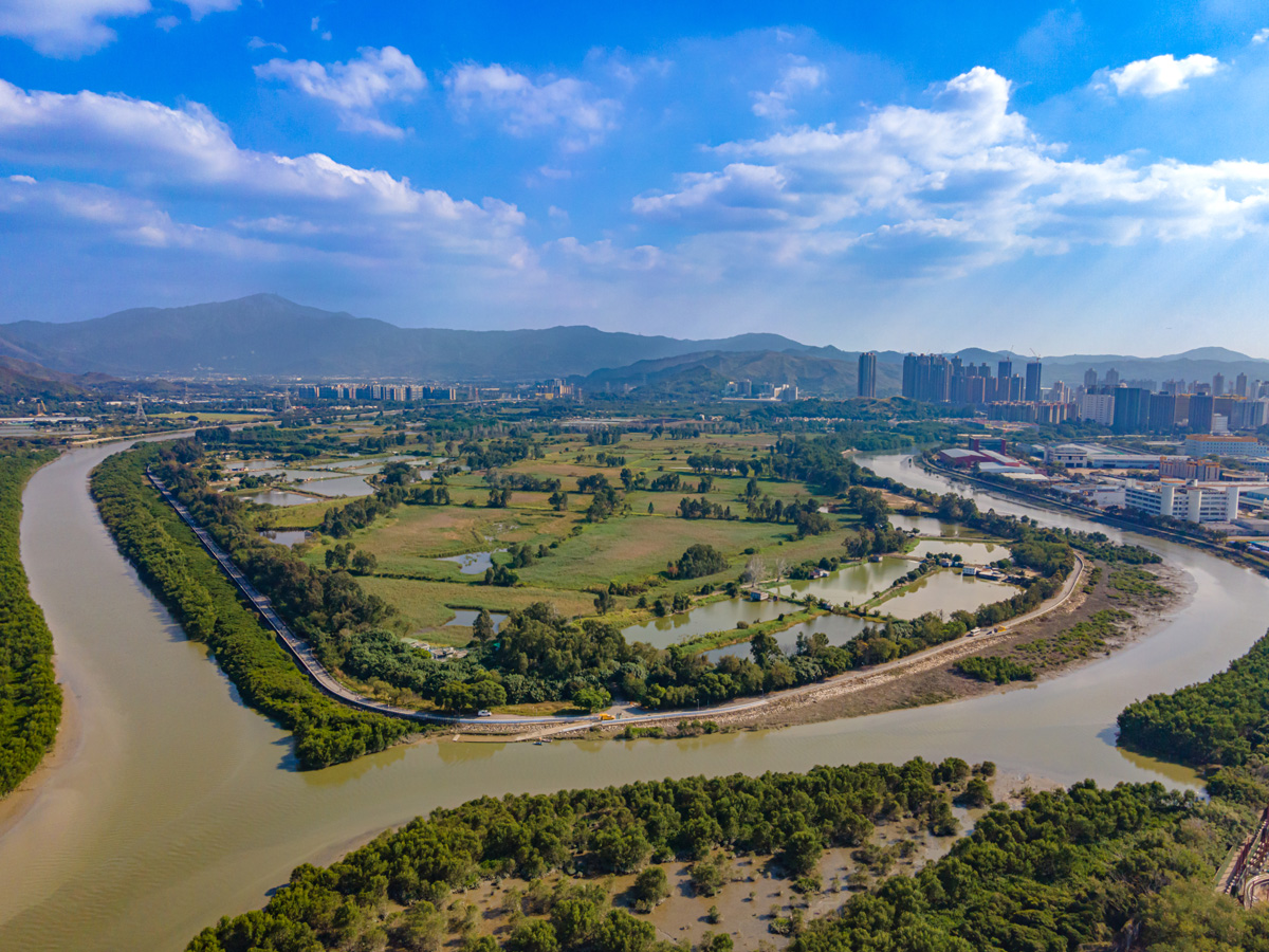 A 1,500 hectares of wetland at Mai Po and Inner Deep Bay – the Ramsar site is an important habitat where waterfowl feed and rest. Kam Tin River and Shan Pui River are important parts of the wetland system as they bring sediments and nutrients to the wetland. During the associated river training works, several measures were adopted at the estuary to protect the Ramsar site’s ecology, including retaining some fish ponds, and natural mud is kept as the bottom substance.