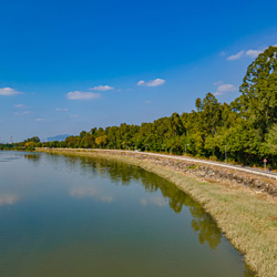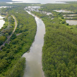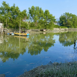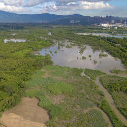 To solve the flooding problem in Kam Tin area, in early 1990s the DSD began drainage improvement works for Kam Tin River and Shan Pui River through straightening and deeping the channels and excavation in a large strip of fish ponds in the midst of Nam Sang Wai, to build a 120m wide, 3km long new channel. The lower course of Kam Tin River has become disconnected from Kam Tin River now. You can observe its narrow, windy meanders that differ considerably from the wide, straight new channel.