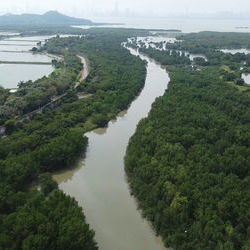 The DSD planted mangroves including Kandelia and River Mangrove and mangrove associates such as Spiny Bears Breech along the banks of Kam Tin River new channel and Shan Pui River, as compensation for the wetland loss due to the river works. Mangroves grow in estuaries and lower courses of tidal rivers. They form rich ecosystems and can stabilise the riverbanks.