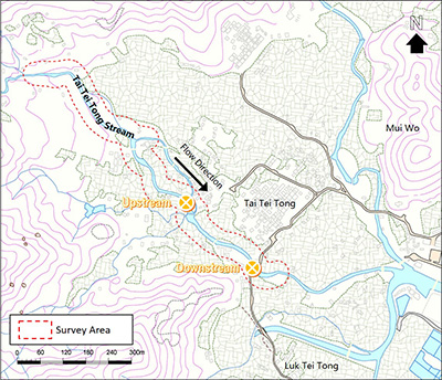 Tai Tei Tong Stream is located at Mui Wo, Lantau. It drains the Lung Mei Hang area and Tai Tei Tong area and connects to Silver River before flowing into the Silver Mine Bay. Some sections of the river were channelized in 2011.