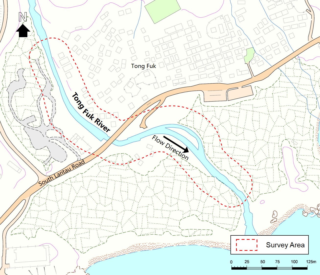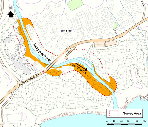 (Information updated in 2016)Tong Fuk River is located at Tong Fuk, Lantau. It is an Ecologically Important Stream. It drains water from the area near Kau Nga Ling and flows southward into the bay area south of Lantau Island.