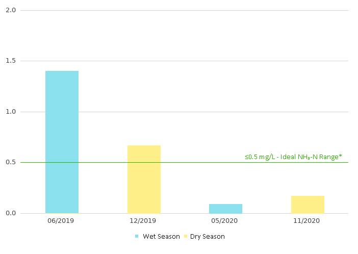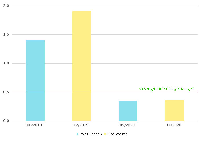 Ammonia-Nitrogen (NH3-N) Indicates the extent of organic contamination of the river channel. NH3-N < 0.5mg/L means that there is limited contamination by nutrient