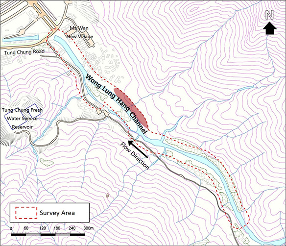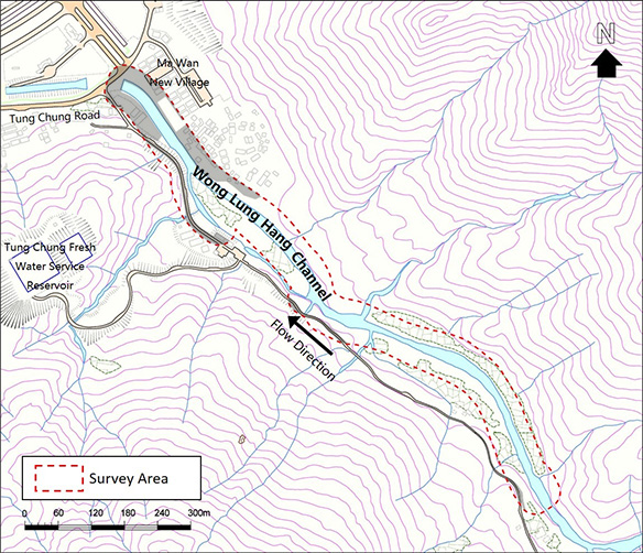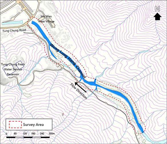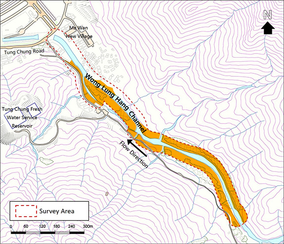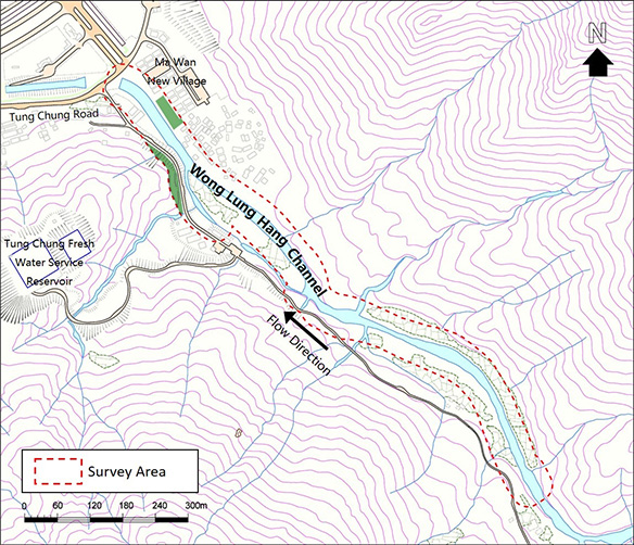 Wong Lung Hang Stream is located at the southern part of the Tung Chung New Town. It originates from the area near Lin Fa Shan and flows from the southeast to the northwest and finally drains into Tung Chung Bay. It is an Ecologically Important Stream. The water quality is also good according to the result of EPD river water quality monitoring programme.