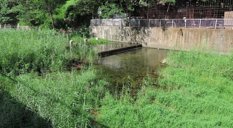 The section from Tei Po New Village to the upper hillside area in Wong Lung Hang is a typical hillside stream with bedrocks and the stream banks are overgrown with dense woody plant community, which includes native trees, shrubs, small trees and climbers. The watercourse at the lower section opposite to Ma Wan New Village is lined with concrete. This section is sparsely covered by herbs.