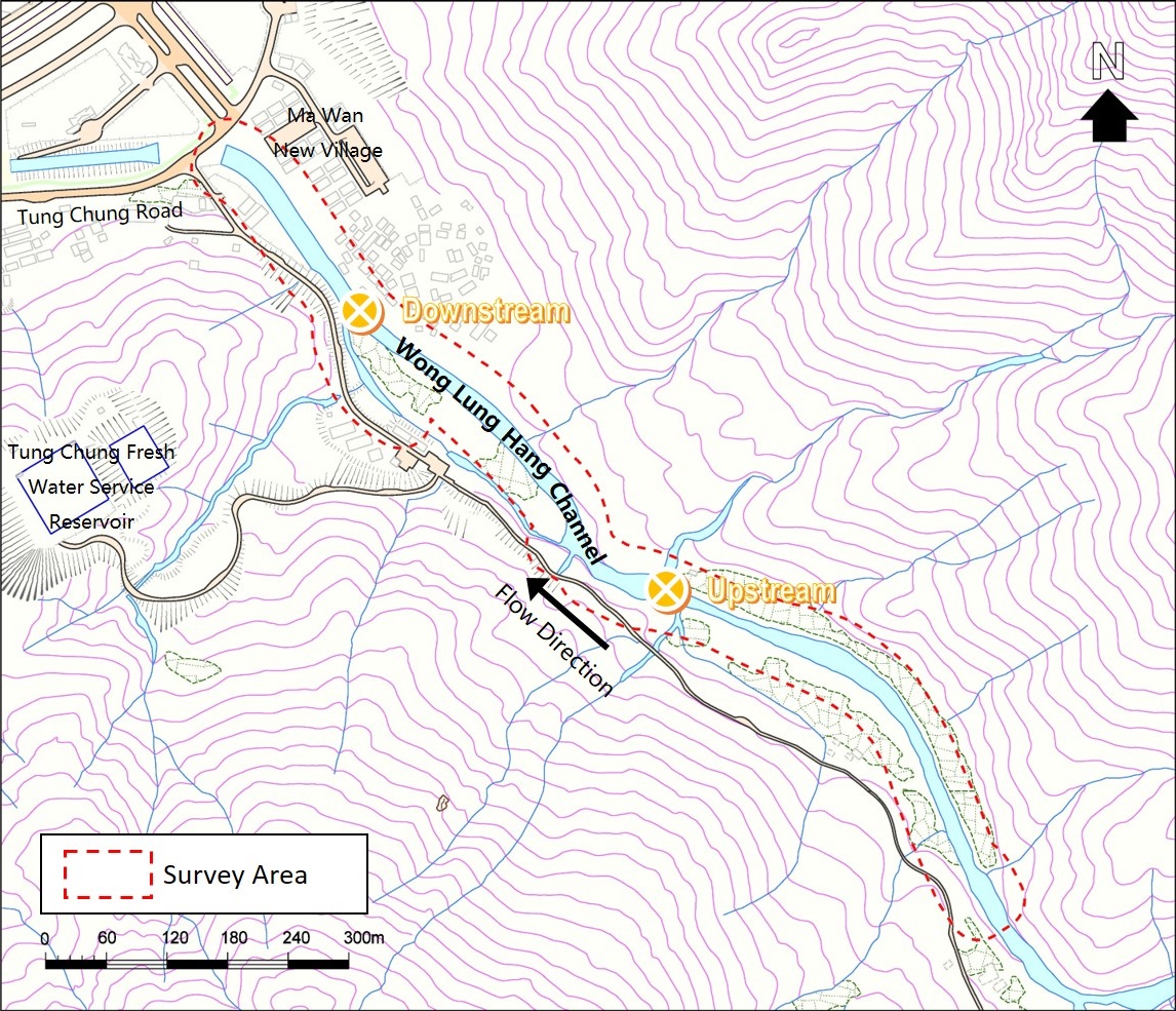 Wong Lung Hang Stream is located at the southern part of the Tung Chung New Town. It originates from the area near Lin Fa Shan and flows from the southeast to the northwest and finally drains into Tung Chung Bay. It is an Ecologically Important Stream. The water quality is also good according to the result of EPD river water quality monitoring programme.