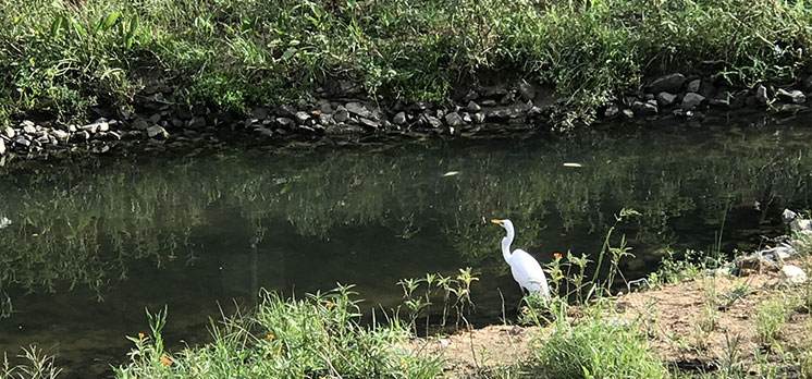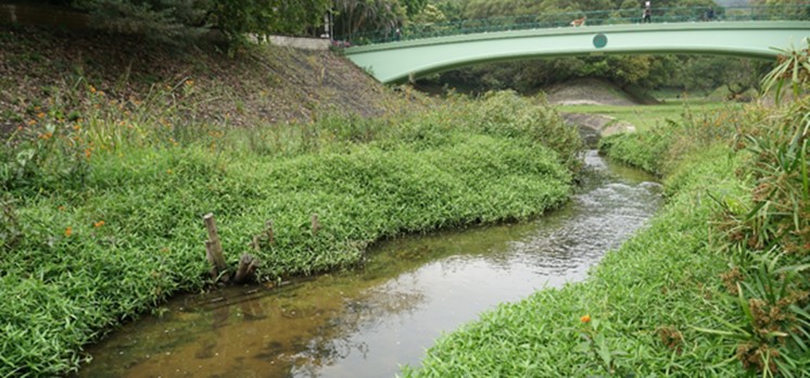 About 65m of concrete channel section was replaced with more natural river bed substrates and the riparian zone was enhanced. Diverse aquatic habitats such as pools, riffles, resting ground for birds and emergent vegetation were established.