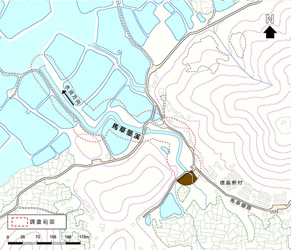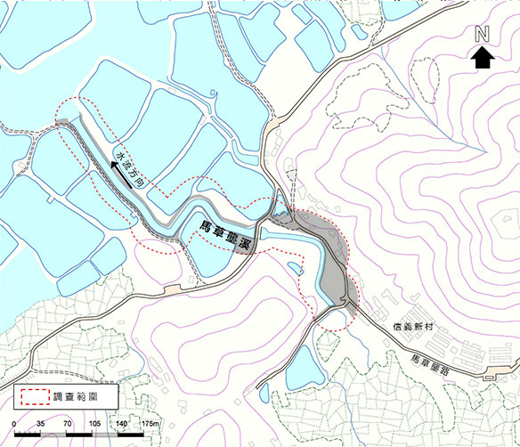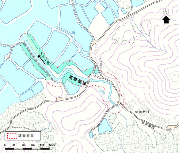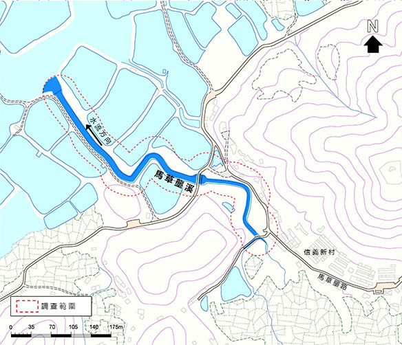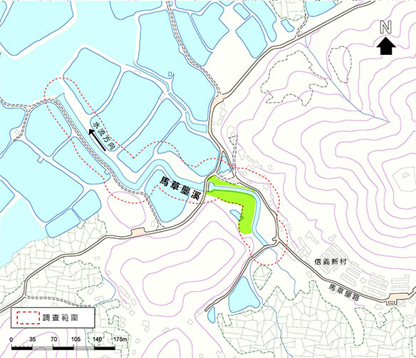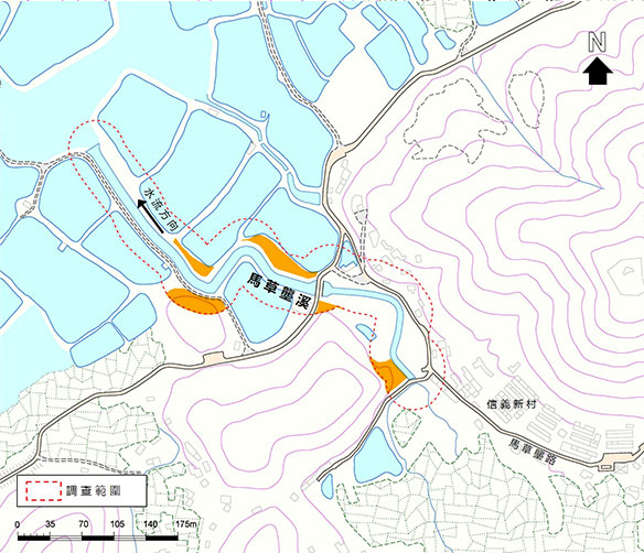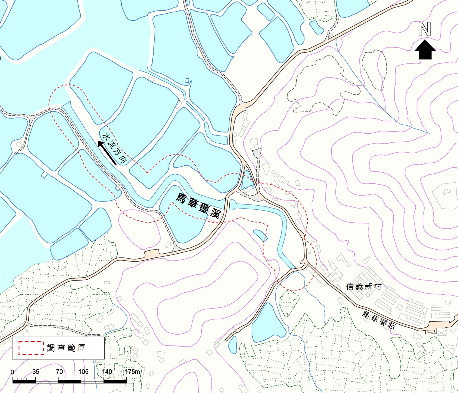 大部分的河道都採用了石籠結構,在馬草壟信義新村的西南部有一段半自然的河段。沿途石籠壁上的植被生長情況各不相同,下游河堤的兩旁幾乎沒有植被,中段以濕地草被較多,上游則主要有草本植物。