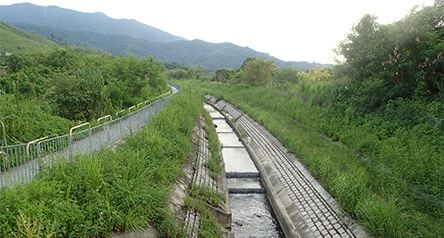河道以混凝土河床和植草磚河堤建成,在河堤上能找到常見的草本植物,水中記錄游濕地植物和草被,大部分彎曲河段的沿岸也有大量草本植物。
