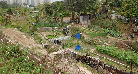 河道附近有幾片農地, 這些旱田種植了常見的作物和幾株果樹。