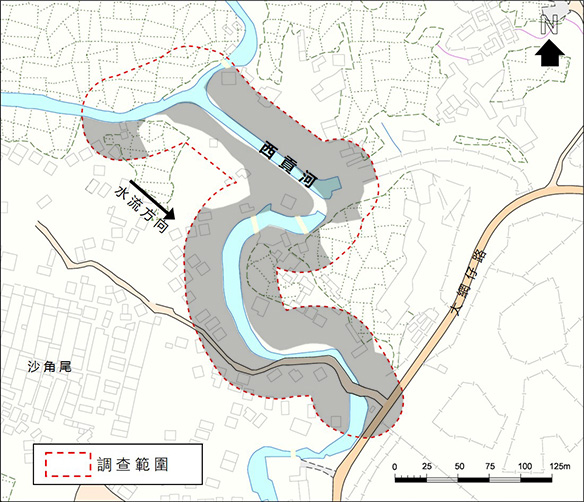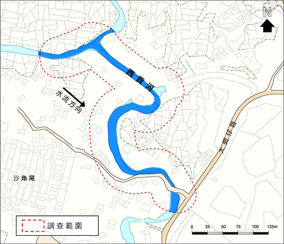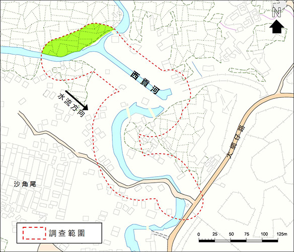 大部分的河堤安裝了石籠,為植被生長提供了環境,上游部分是半天然河道,河岸帶記錄有原生樹木和草本植物,沿著石籠牆會發現常見的草本植物、攀緣植物、自然生長的木本植物和濕地植物。