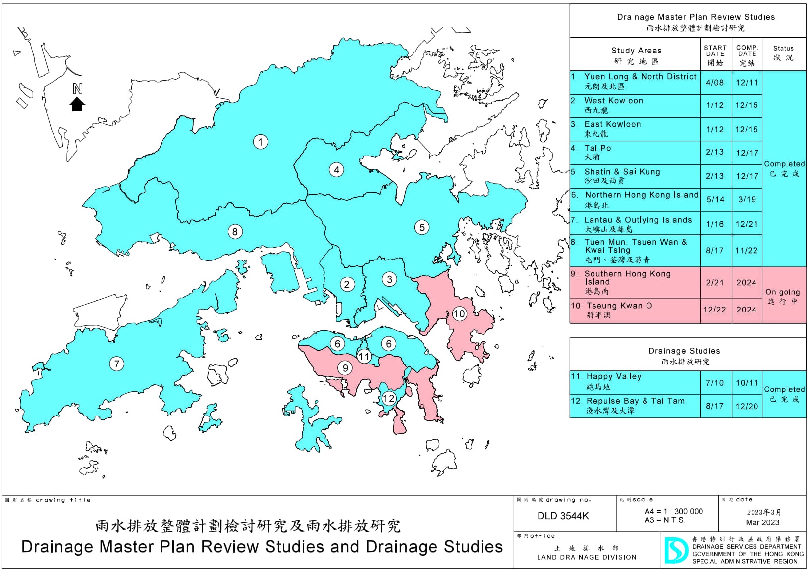 除了雨水排放整体计划,亦于以下3个集水区进行雨水排放研究: