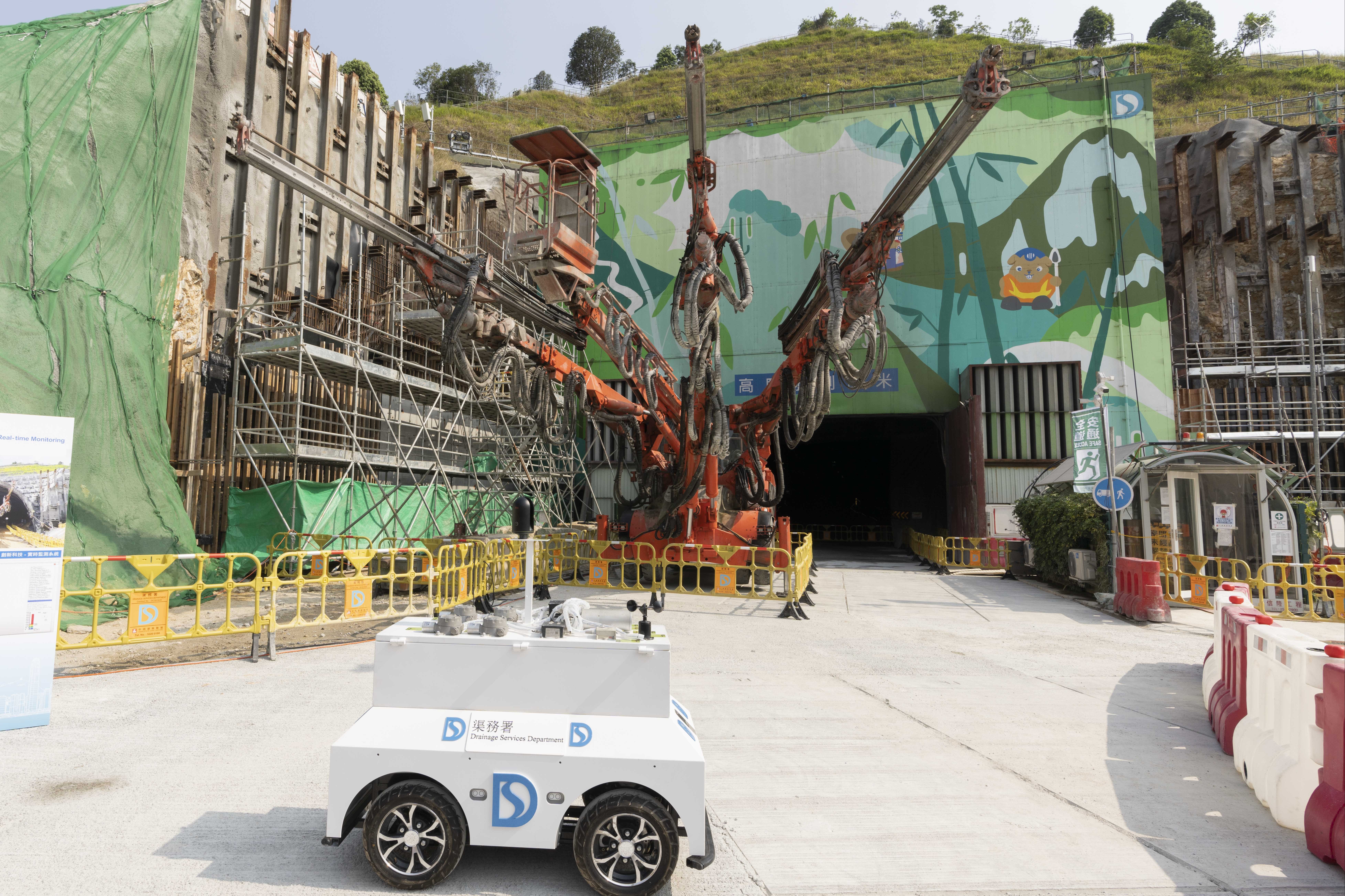 工程团队自行研发「岩洞探哥」机械人监察系统,代替工程人员于爆破后进入岩洞监察空气质素,并透过LiDAR镜头扫描岩洞结构,协助工程人员评估落石风险,进而提升工业安全。
