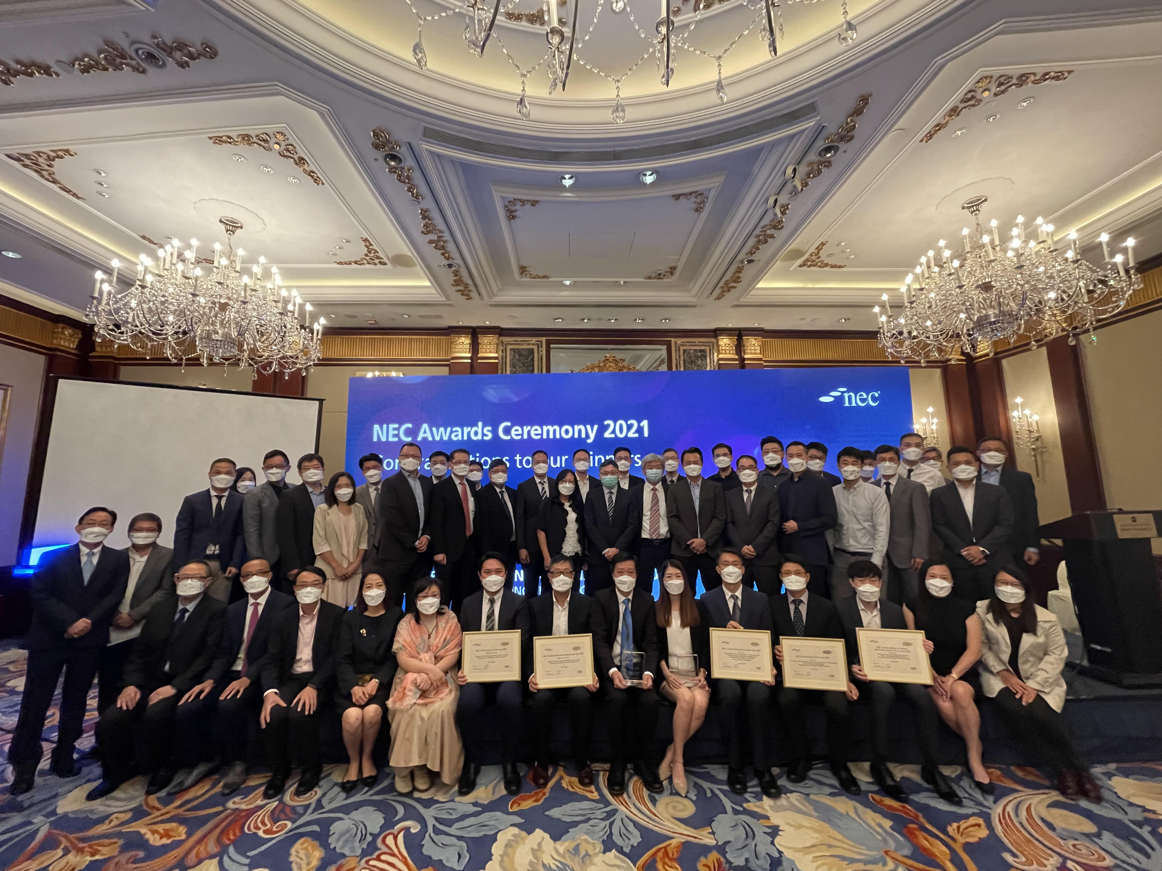 发展局常任秘书长(工务)林世雄先生(后排左十五)及渠务署署长彭雅妮女士(后排左十三)与获奖的工程团队合照