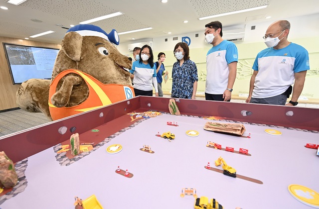 发展局局长甯汉豪今日在渠务署署长彭雅妮陪同下,出席开放日,为同事打气并与市民同乐。她其后前往岩洞工地,了解工程进度和挑战。
