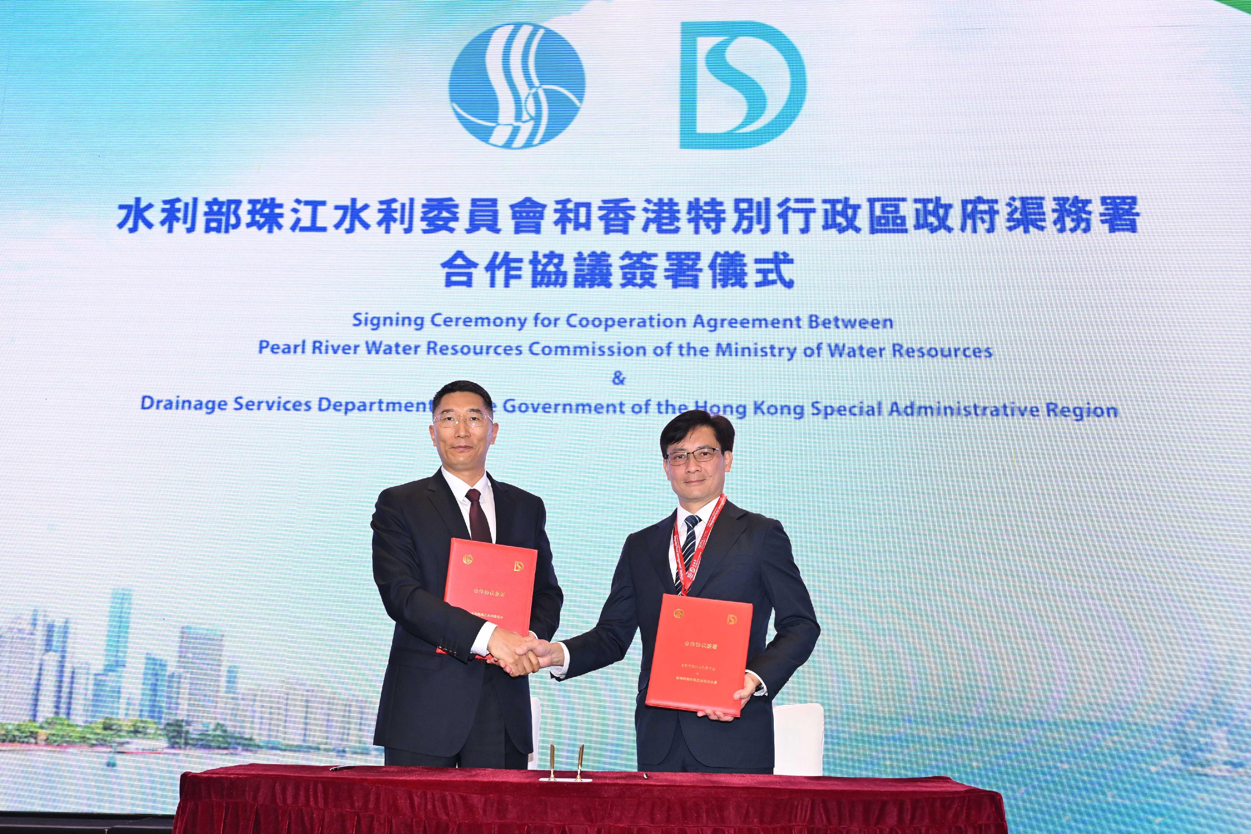 渠务署与国家水利部珠江水利委员会于会议上签署合作协议,以加强香港及内地在应对气候变化和创新科技等领域的交流和合作。水利部珠江水利委员会主任吴小龙作主题演讲时表示,水利部珠江水利委员会近年来积极践行习近平总书记「节水优先、空间均衡、系统治理、两手发力」治水思路,深入贯彻「两个坚持、三个转变」的防灾减灾救灾理念,大力推进珠江流域水旱灾害防御体系建设,提升水旱灾害防御能力,并以科学精细调度指挥,确保珠江流域和粤港澳大湾区防洪安全。