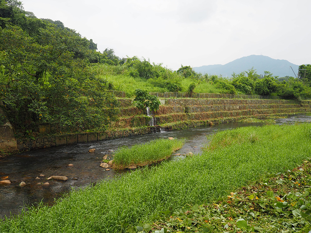 林村河上游堤岸的石笼河岸,有助植物生长及营造自然生态环境