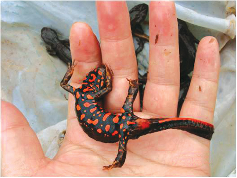 林村河上游河道改善工程进行前,工程团队捞捕香港瘰螈
