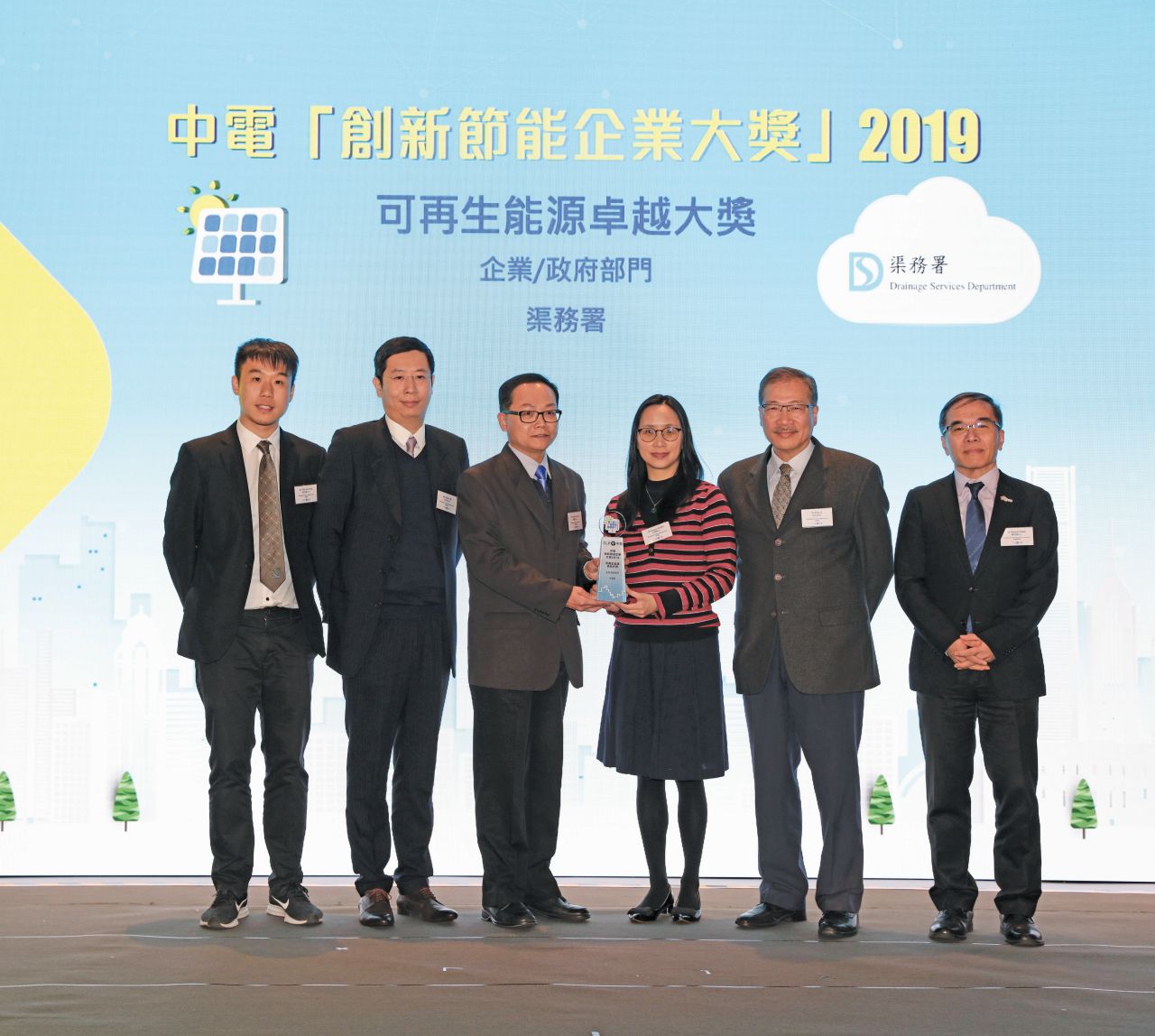 小蚝湾污水处理厂太阳能发电场工程项目在中华电力有限公司举办「创新节能企业大奖」2019荣获「可再生能源卓越大奖 ( 企业/政府部门 ) 」。