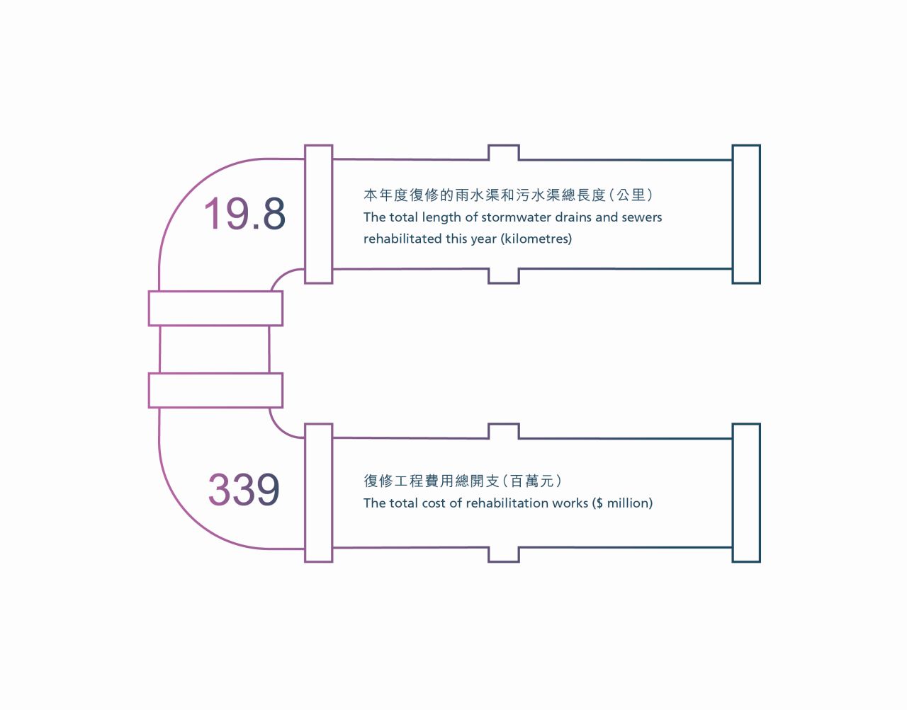 工程于2018年1月展开,现已如期修复了约40%的污水渠管。我们以无坑挖掘技术和使用小型隧道钻挖机增建污水干渠。整项工程预计于2022年第一季完成,预算费用约6.8亿元。