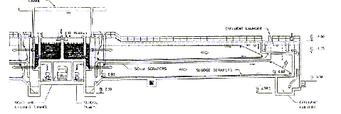 根据净化海港计划第一期及二期甲设计的昂船洲污水处理厂,每日可处理高达245万立方米的庞大污水流量。为了达到此目的,便需要多个占地宽广的沉淀池。为节省空间,沉淀池采用双层式设计。双层沉淀池的数目共有46个,每个长约60米阔7米。