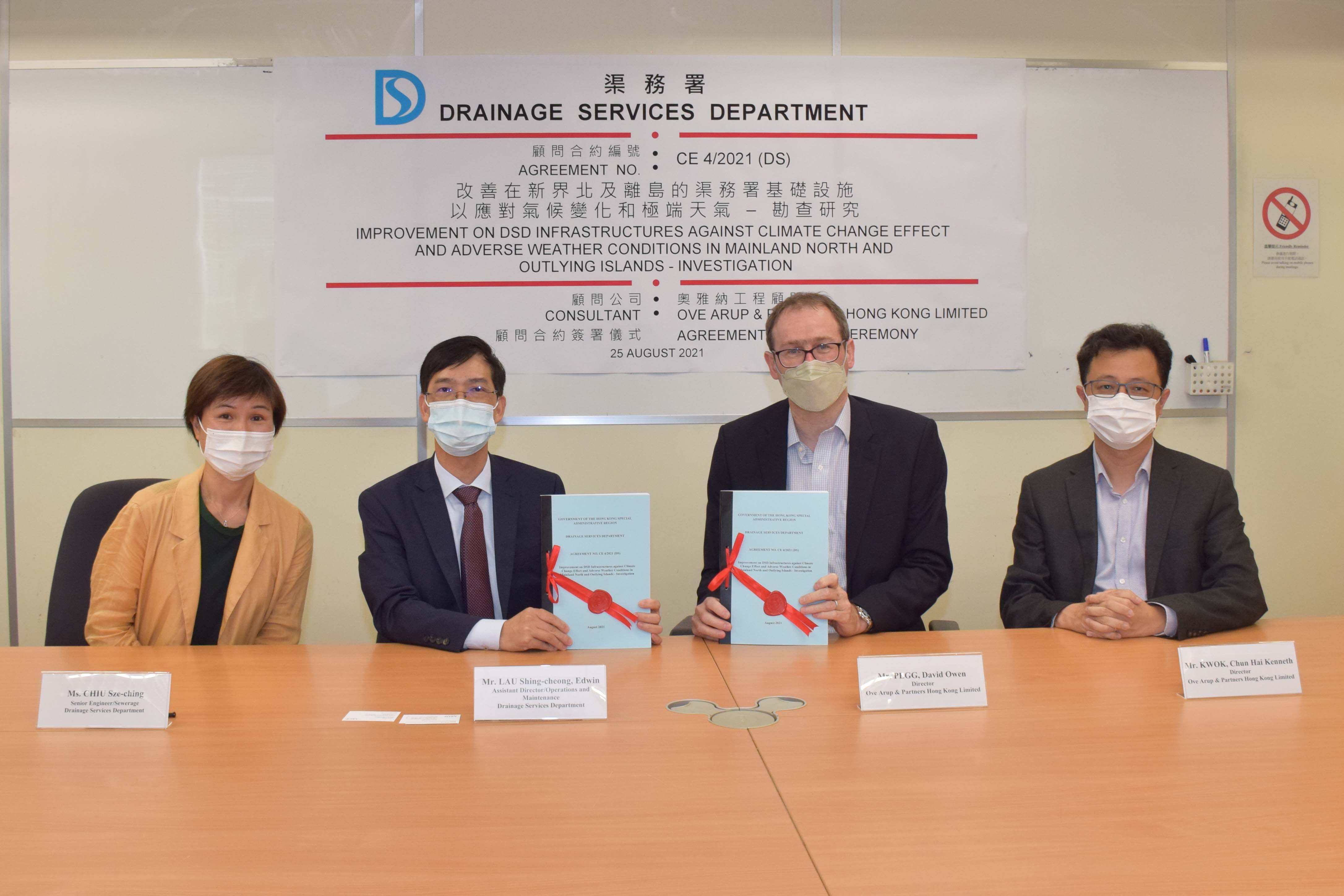 渠务署于2021年8月25日与奥雅纳工程顾问签署一份总值港币约1,150万元的顾问合约,为改善在新界北及离岛的渠务署基础设施以应对气候变化和极端天气进行勘查研究。