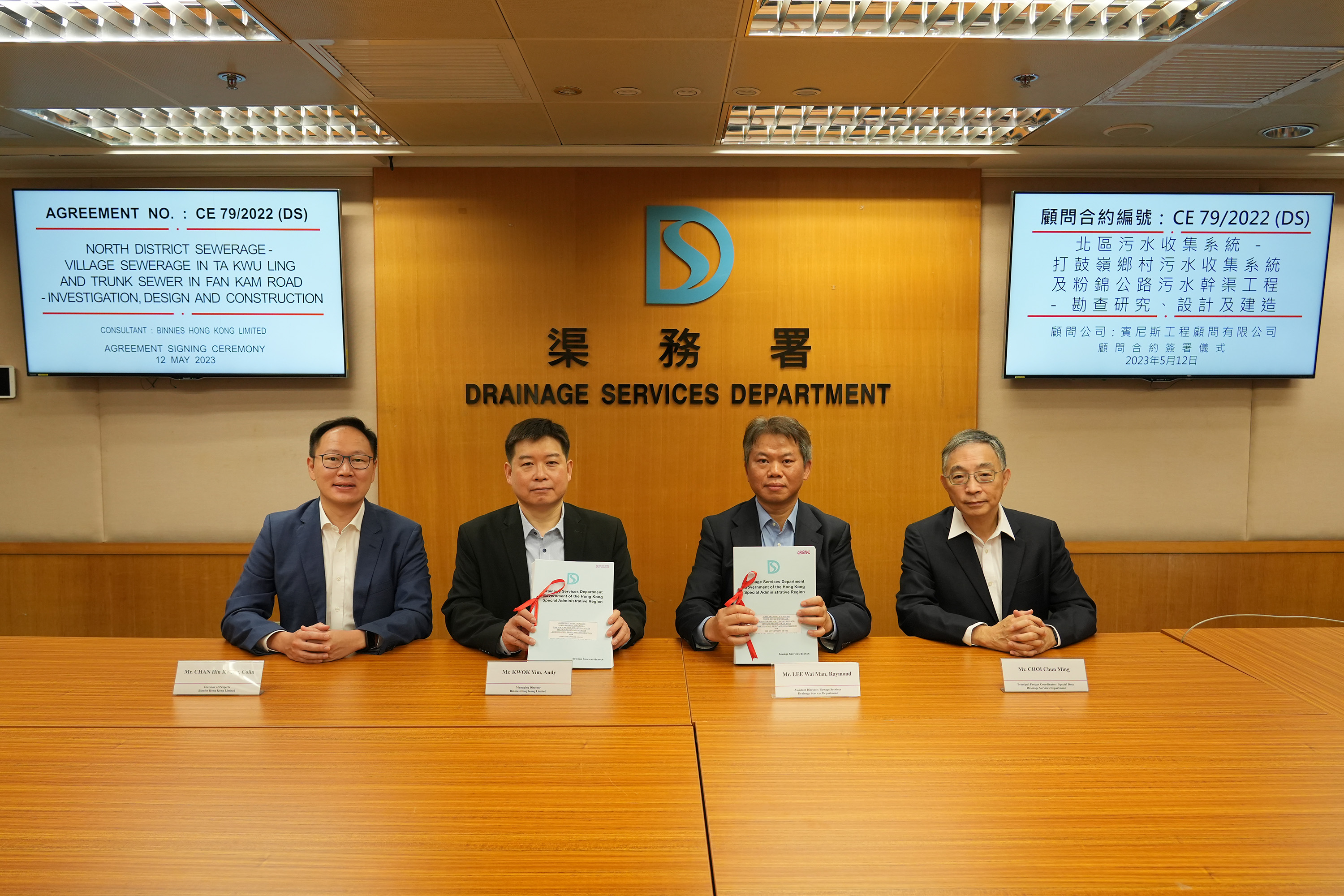 渠务署于2023年5月12日与宾尼斯工程顾问有限公司签署一份总值约1,300万元的顾问合约,为「北区污水收集系统-打鼓岭乡村污水收集系统及粉锦公路污水干渠工程」进行勘查研究、设计及建造。