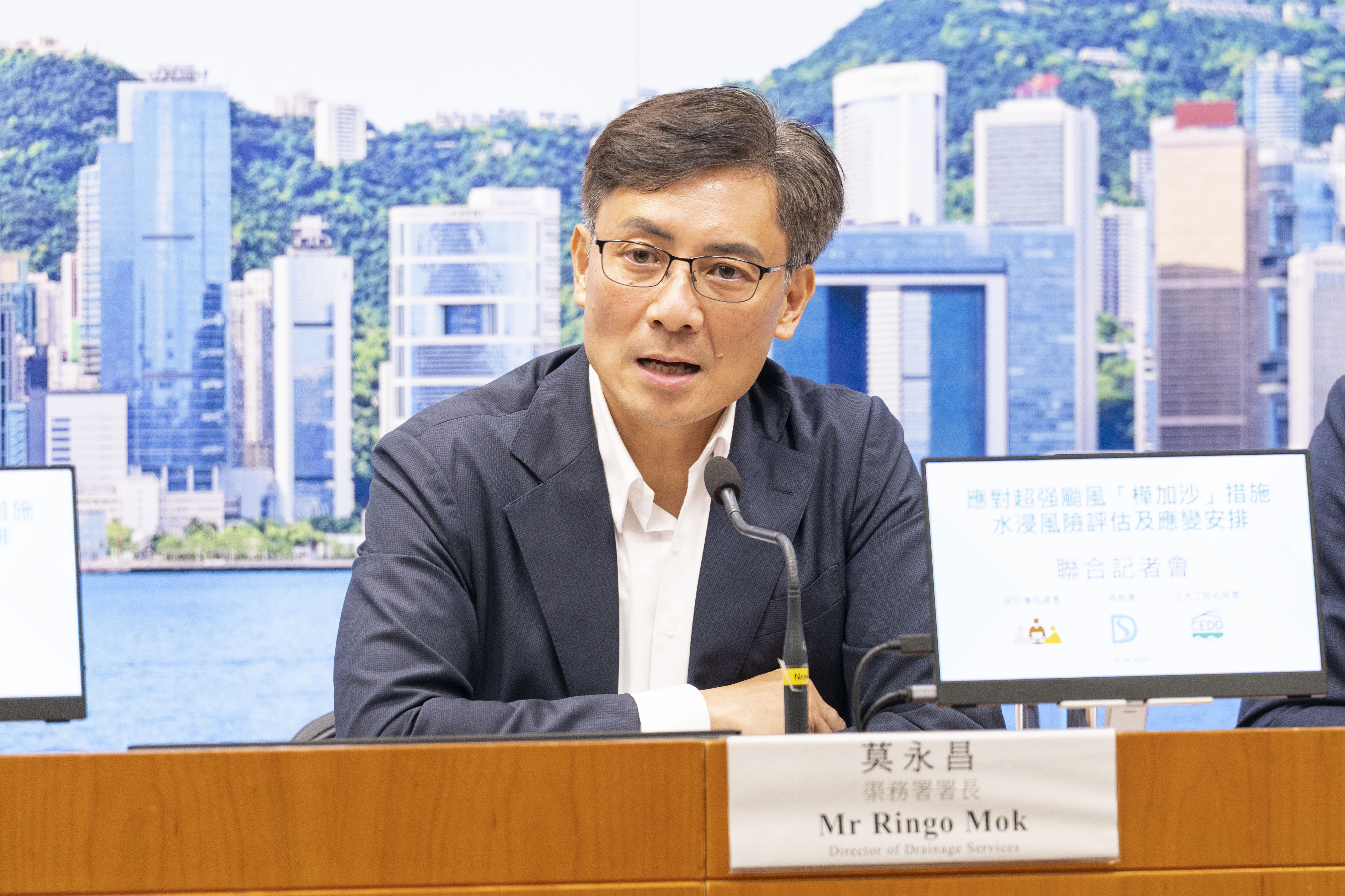 渠务署署长莫永昌先生介绍了部门首次采用了由渠务署自主研发的M³淼立識水浸风险可视化系统作水浸风险评估,并识别出有机会出现较严重水浸的地区。署方除了恒常应对措施外,亦实施了一系列特别行动,以应对超强台风「桦加沙」而带来的水浸风险,包括增加紧急应变队伍、提早派遣强力排水机械人到水浸风险较高的地点戒备、以及联同土木工程拓展署为受影响地区的市民提供更多沙包等。