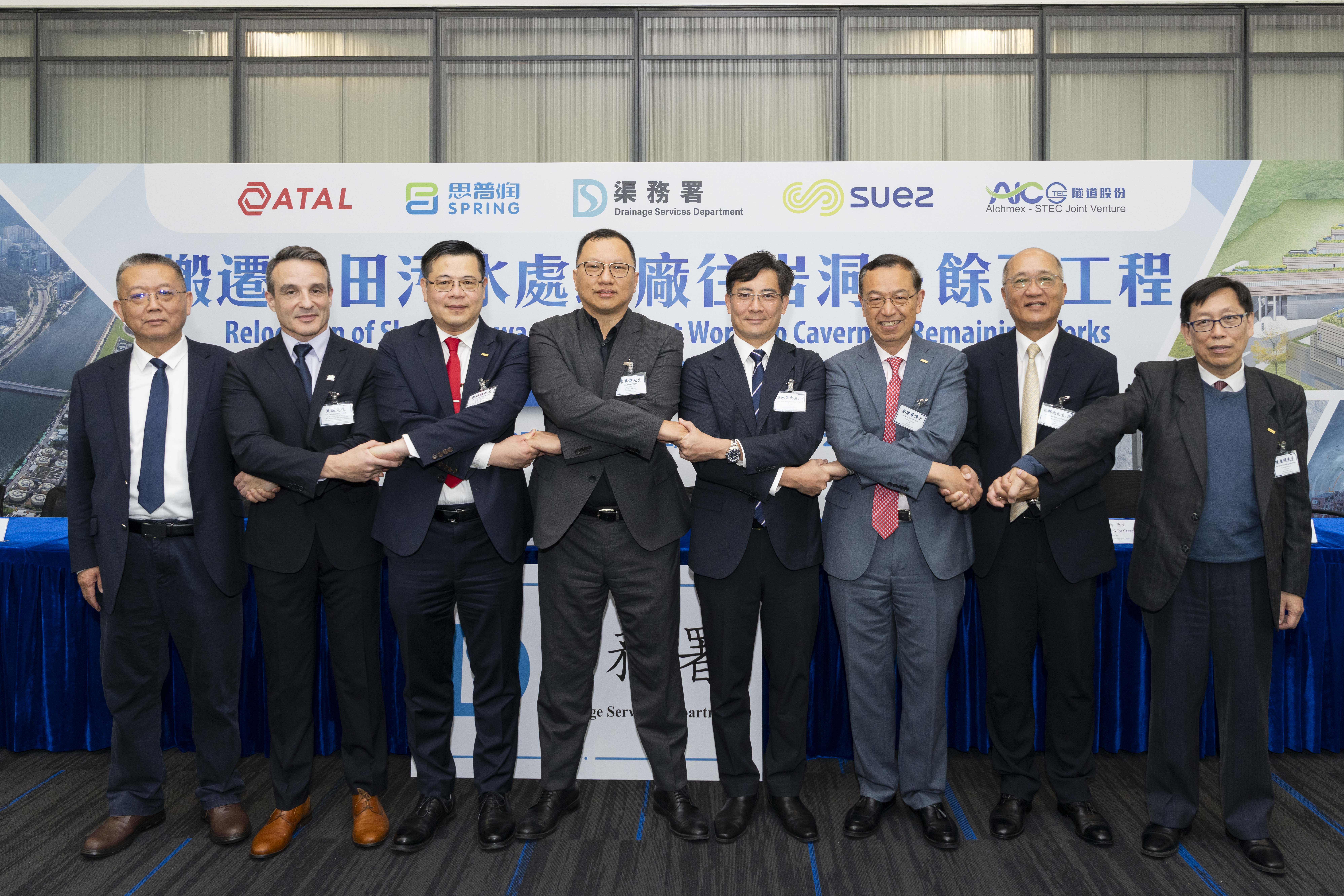 为配合「搬迁沙田污水处理厂往岩洞」余下工程的推展,渠务署今日(1月27日)举行仪式与承建商及供应商签署五份相关合约,总值约九十四亿元。