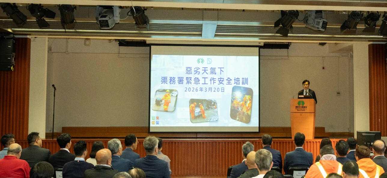 渠务署一直高度重视前线人员的职业安全。为进一步保障人员在恶劣天气下执行紧急职务时的安全,渠务署与职业安全健康局(职安局)携手合作,自 2025 年 12 月起合办「恶劣天气下渠务署紧急工作安全培训」。