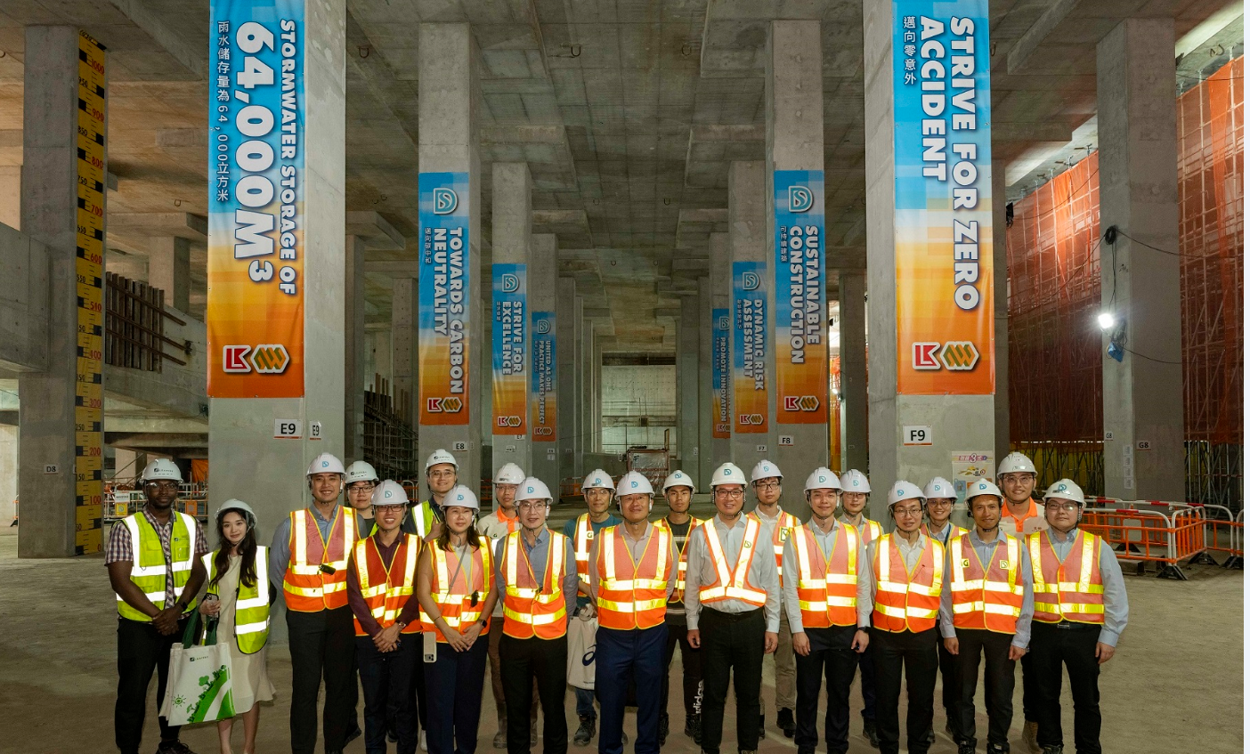 会后,新加坡代表团实地考察渠务署的「秀雅道蓄洪计划」。该项目位于市区密集地带,现正建造一个容量达64,000立方米的地下雨水蓄洪池,透过「一地多用」的概念,蓄洪池完成后将于上盖重建公共游乐场。期间,渠务署展示了一系列创新科技及建造技术,彰显部门致力追求卓越工程,以达致迈向工地零意外及可持续建筑的决心。