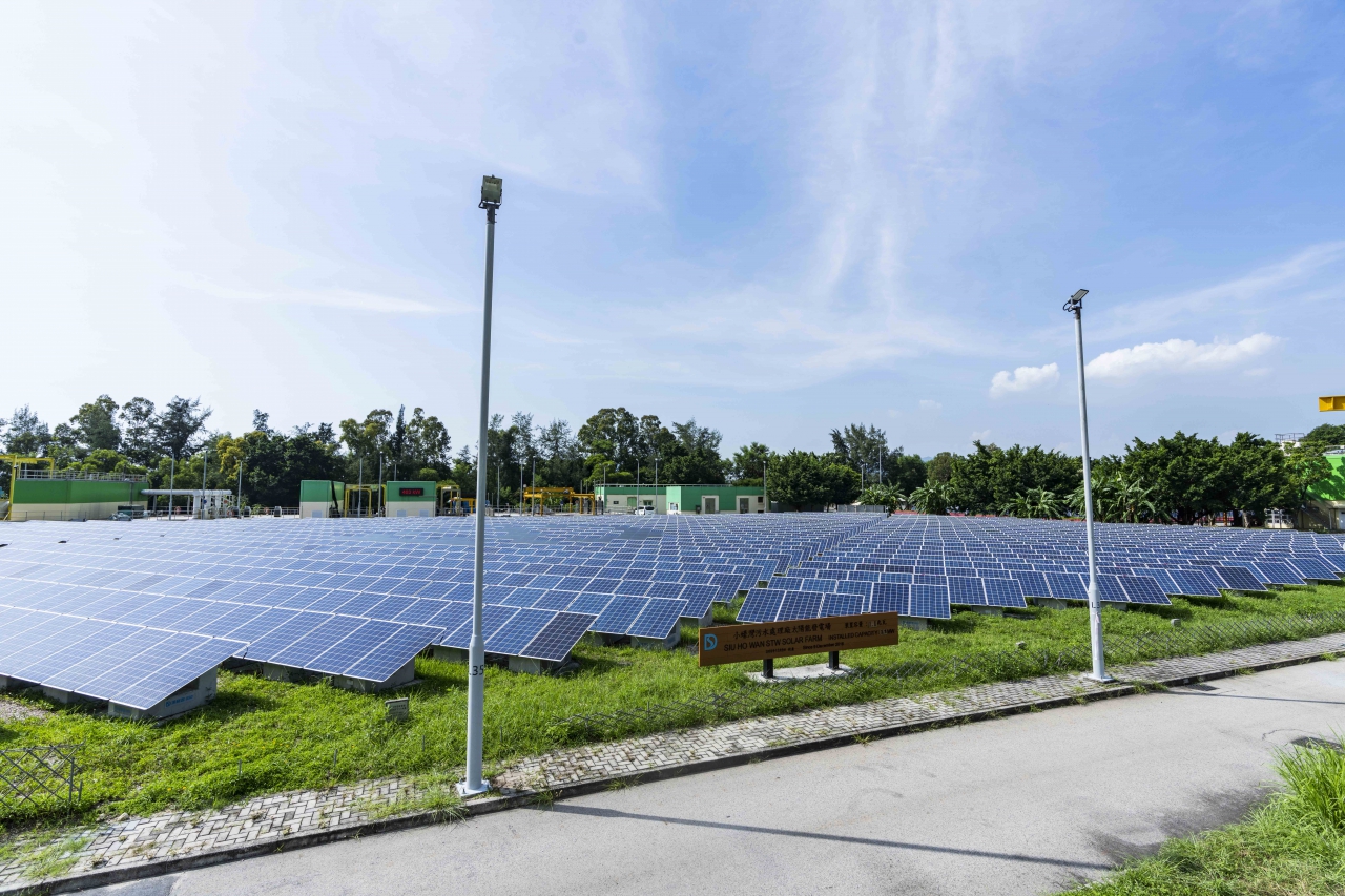 小蠔灣污水處理廠太陽能發電場由約5,000塊太陽能光伏板組成,總佔地面積為11,000平方米,裝置發電容量達1,200千瓦。