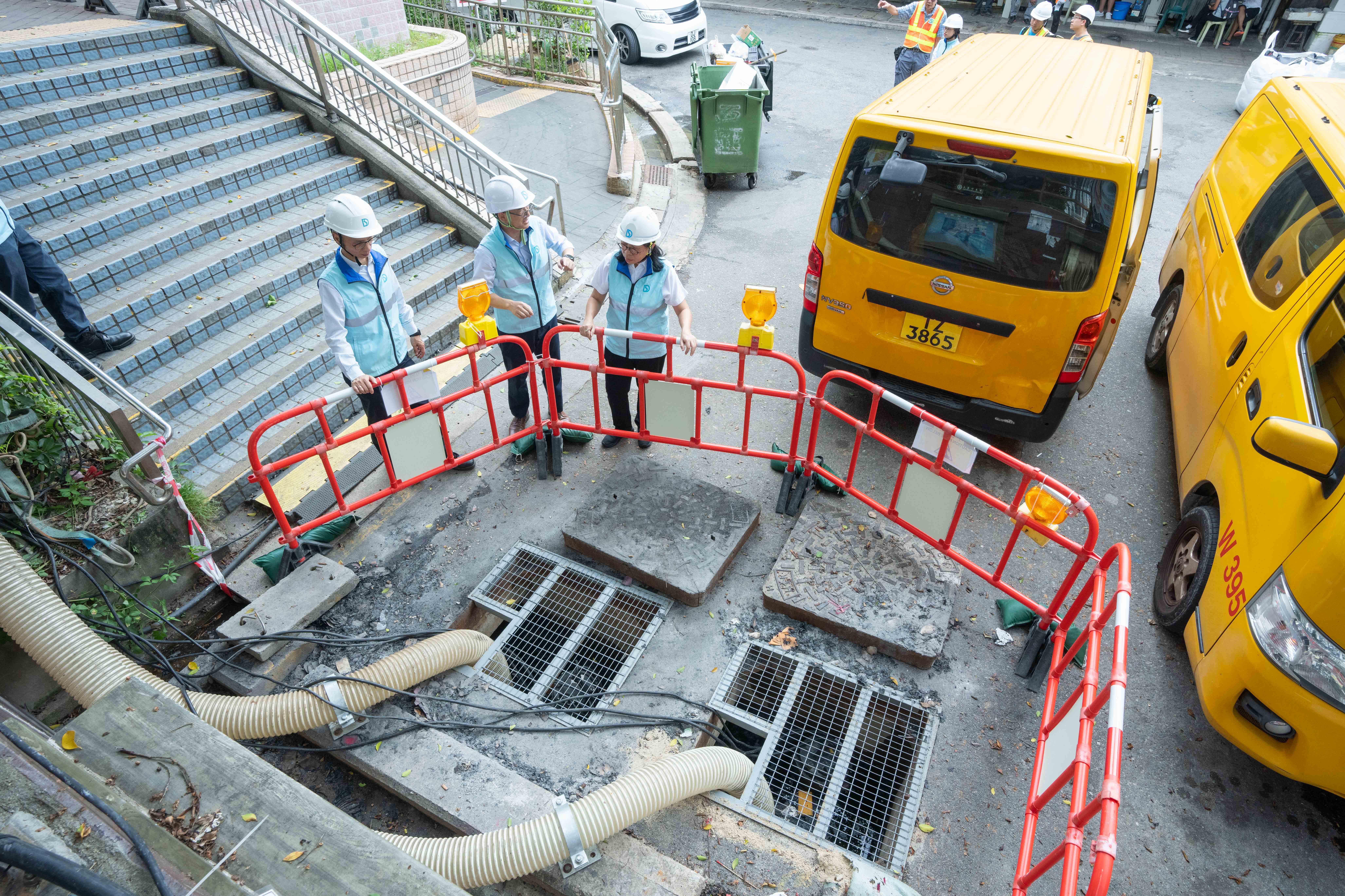 為進一步減低尖沙咀區的水浸風險,渠務署現正在尖沙咀進行雨水排放系統改善工程,包括於百週年紀念公園興建地下蓄洪池,以及在鄰近街道加建排水渠,加強雨水排放系統的排洪能力。彭雅妮到場視察工程進度及早前已完成的多項新建排水設施的排水情況,以確保預防水浸措施運作正常。