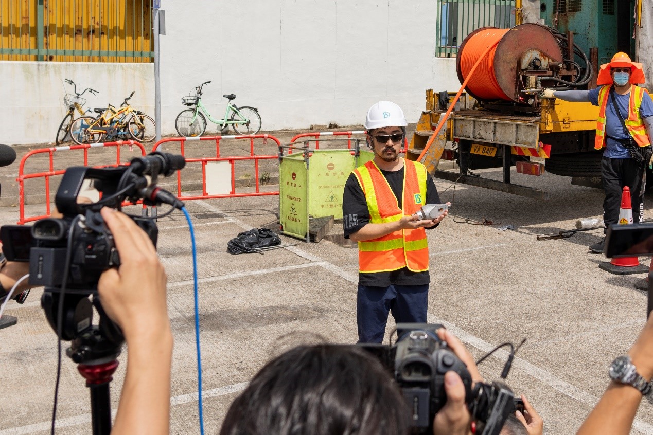 隨後,渠務署助理工程督察王卓恩先生向記者介紹部門通渠車的特色,並示範如何利用通渠車疏通渠道,減低水浸風險。