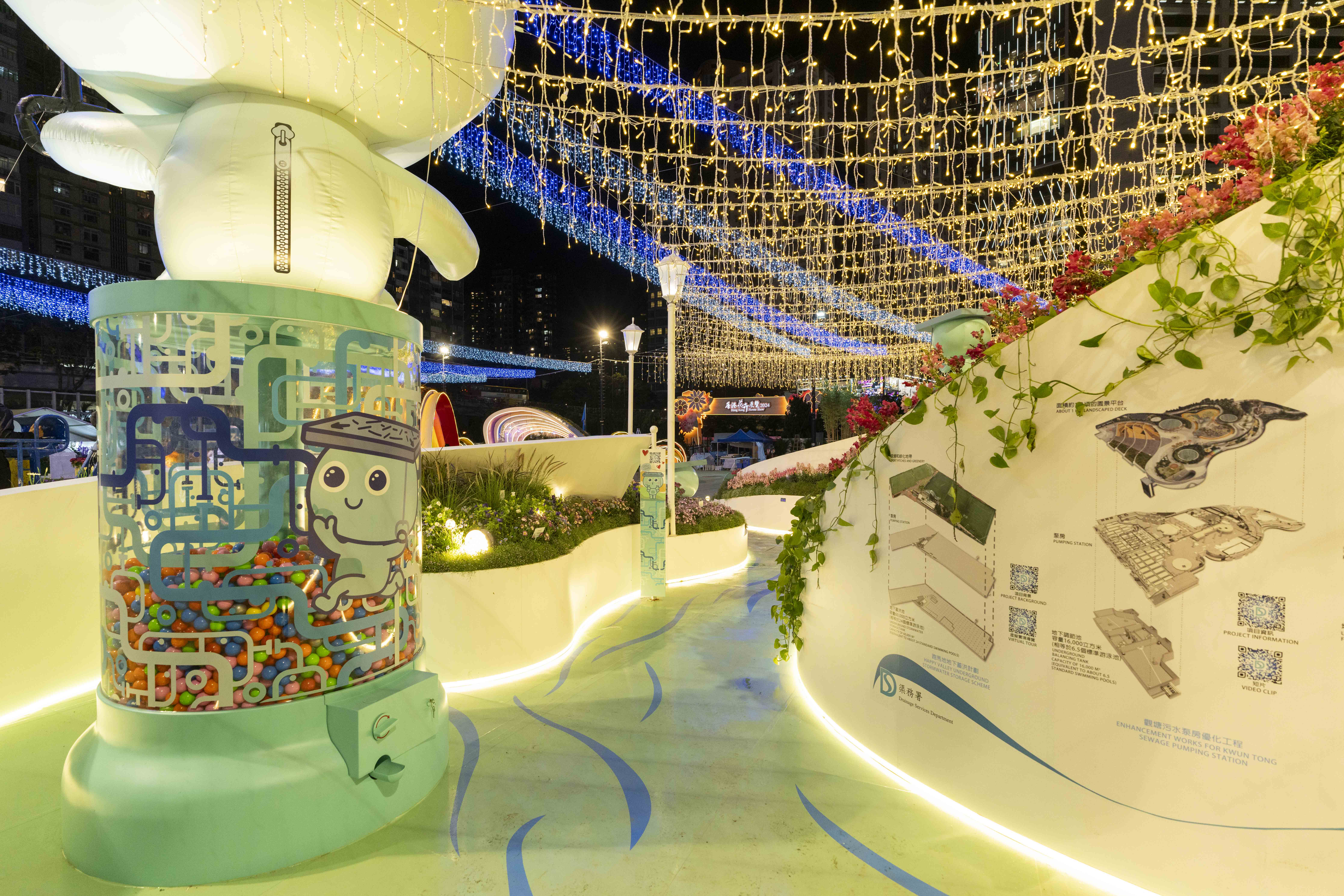 適逢渠務署成立35周年,我們特設「時光走廊」,與市民回顧渠務署過去的發展,展望將來。展區中亦擺設一台巨型扭蛋機,讓市民在賞花期間增添一點玩樂氣氛。